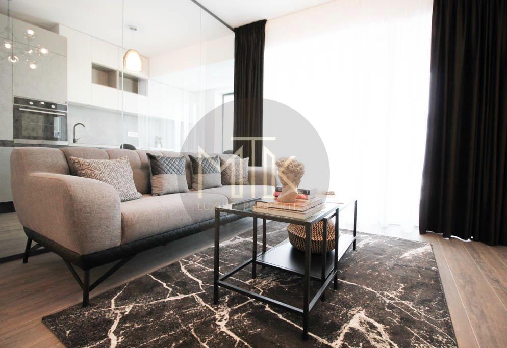 Apartamentul este situat la etajul 1/8, este compus dintr-un living spatios, bucatarie inchisa delimitata de living printr-un perete din sticla, dormitor cu dressing cu oglinzi, o baie cu cada, hol si terasa.