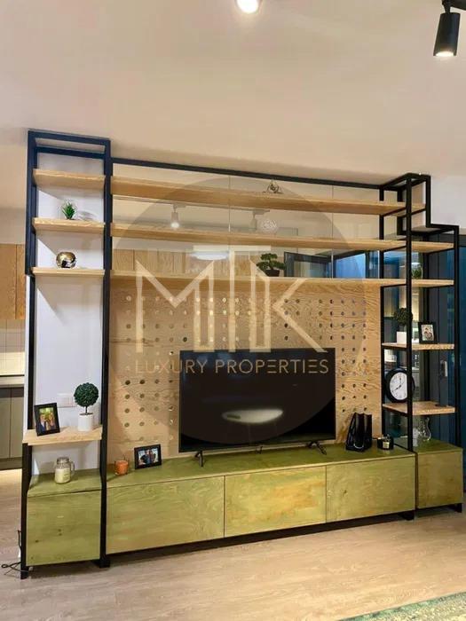 Apartamentul este dotat cu numeroase spatii de depozitare integrate ca dimensiune si culori in spatiu iar bucataria beneficiaza de toate electrocasnicele necesare unei locuinte perfecte.