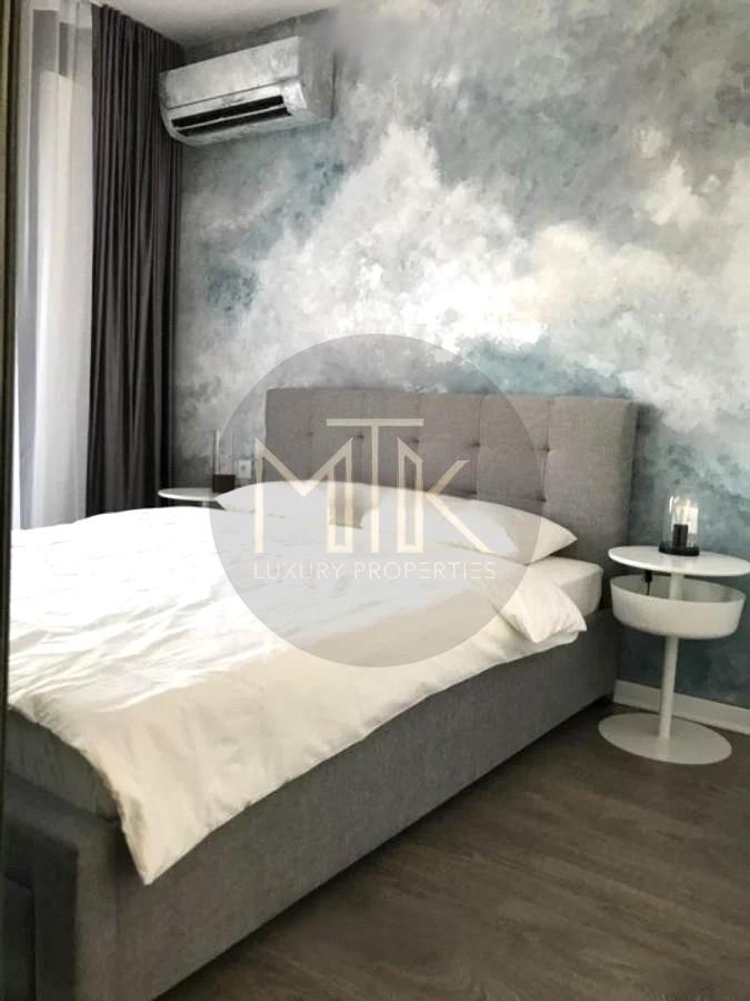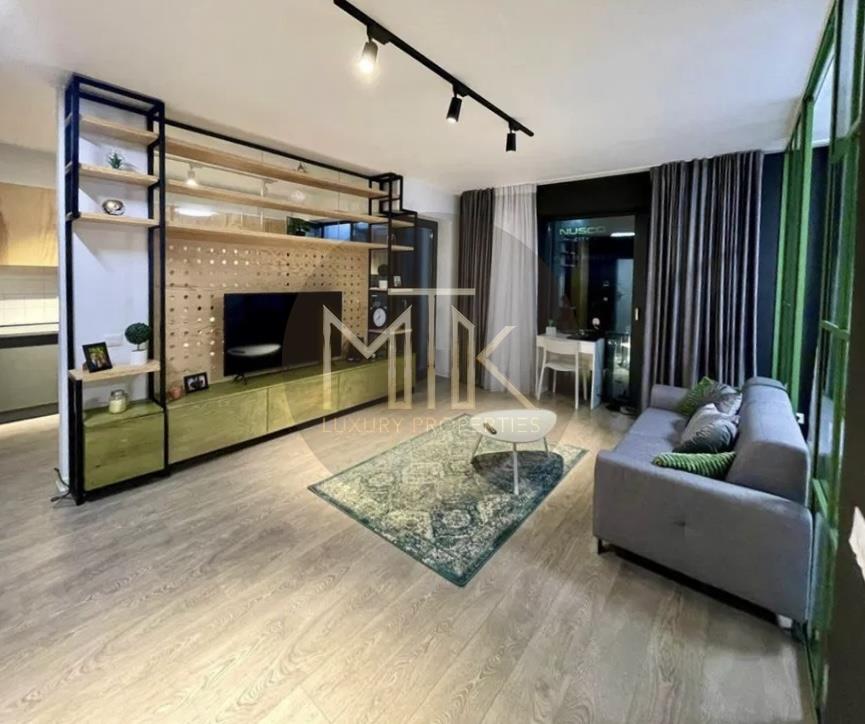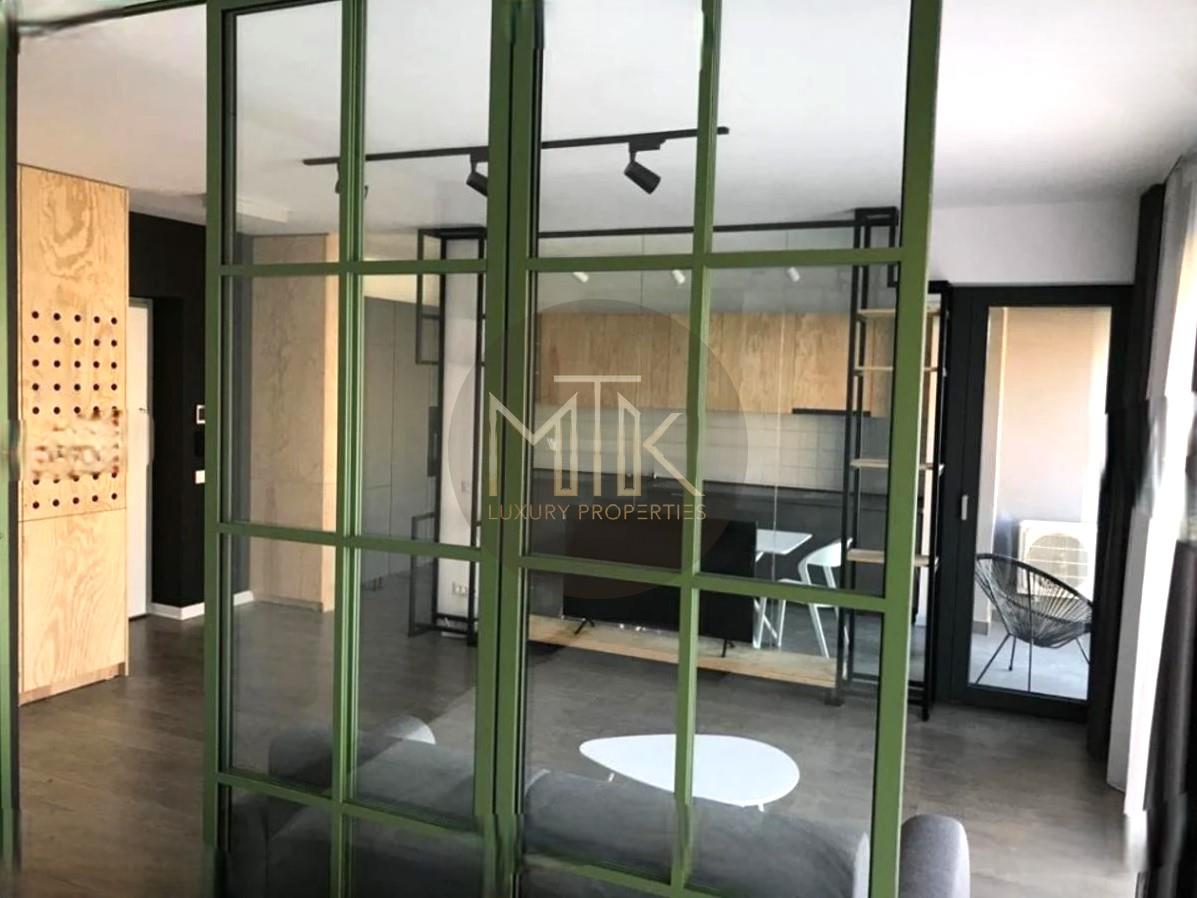 Apartamentul este situat la etajul 2/11, este compus dintr-un living spatios cu zona de dining, bucatarie delimitata de living printr-un perete din sticla, dormitor cu dressing, o baie cu cada, si un balcon cu vederea in exteriorul complexului.