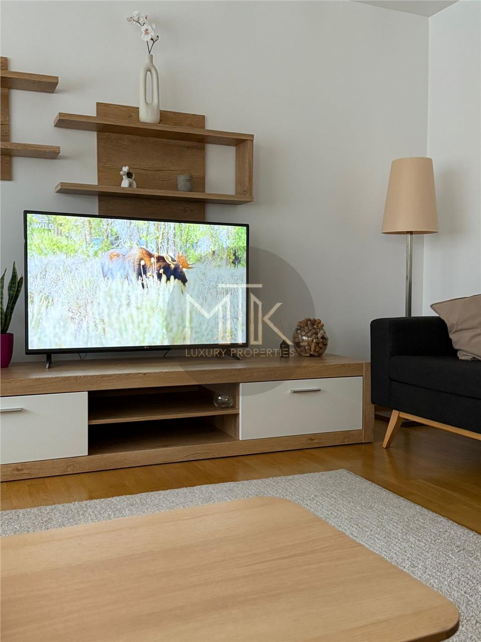 Ca si mentiuni suplimentare, parchetul este din stejar auriu, gresia si faianta Delta Studios, mobilierul este de la Mobexpert, usi premium Porta Doors, usa metalica Maco, aer conditionat Daikin, Smart TV LG+ Samsung.