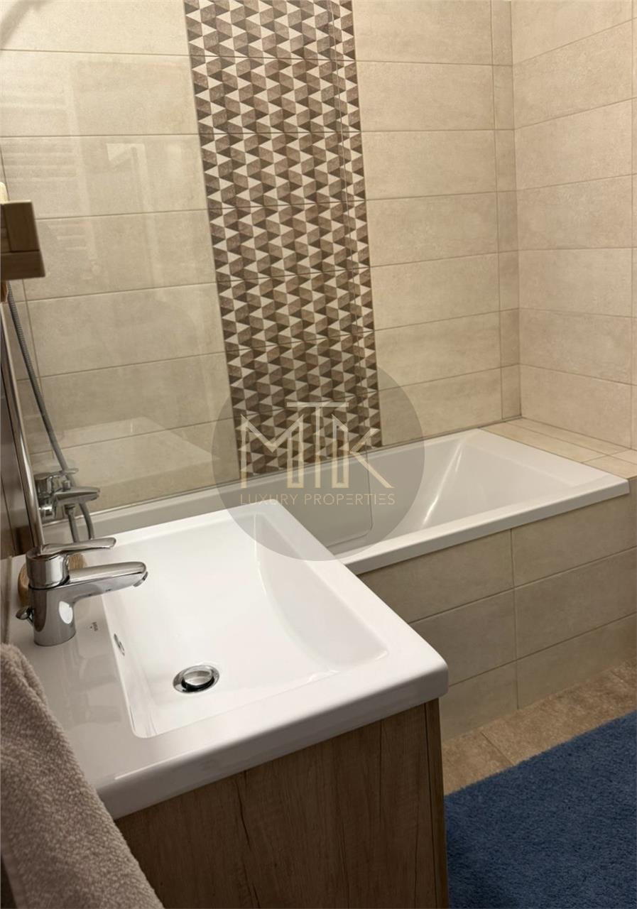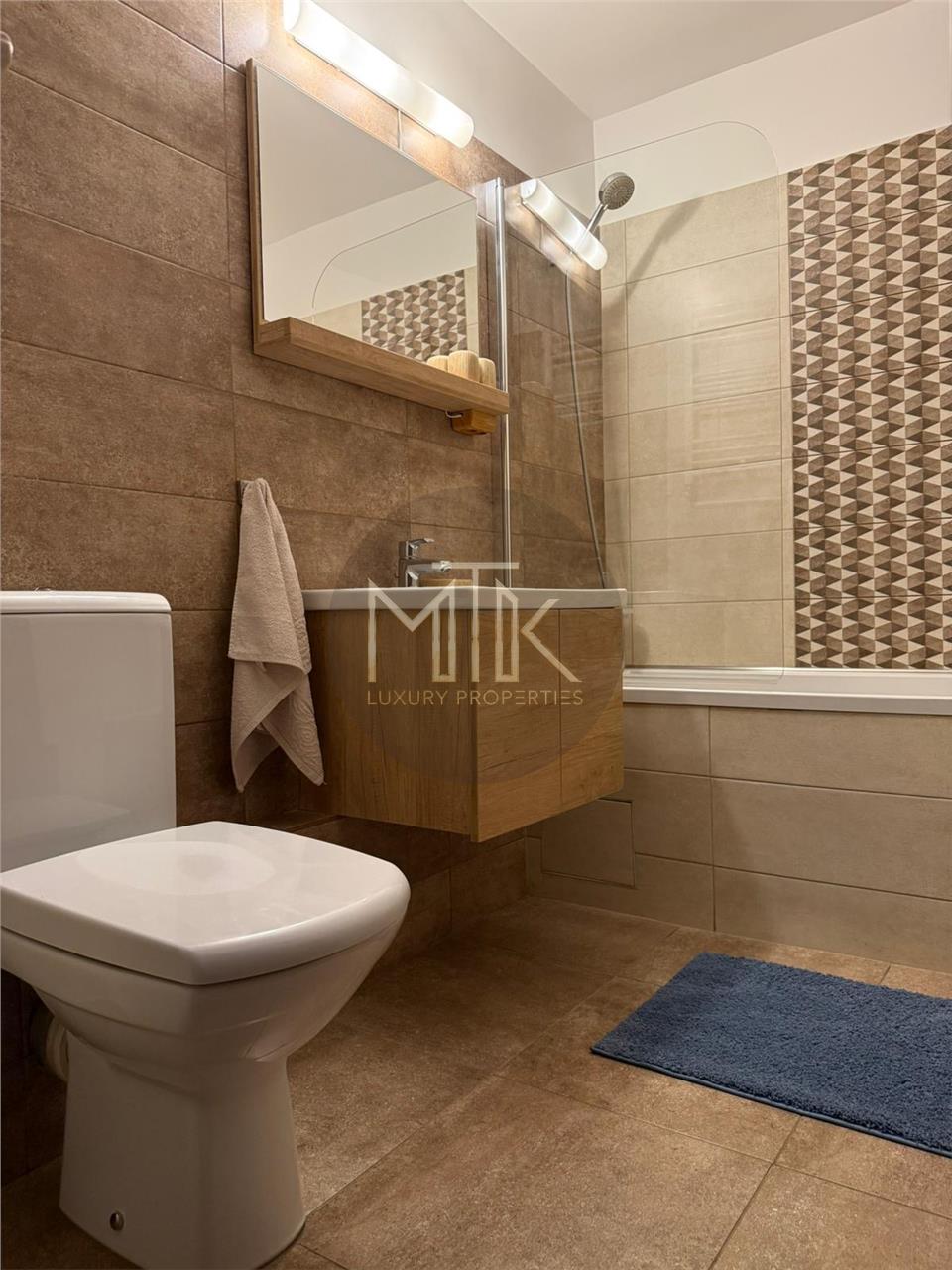 -Baia este moderna, dotata cu cada, finisaje contemporane si iluminare eficienta.