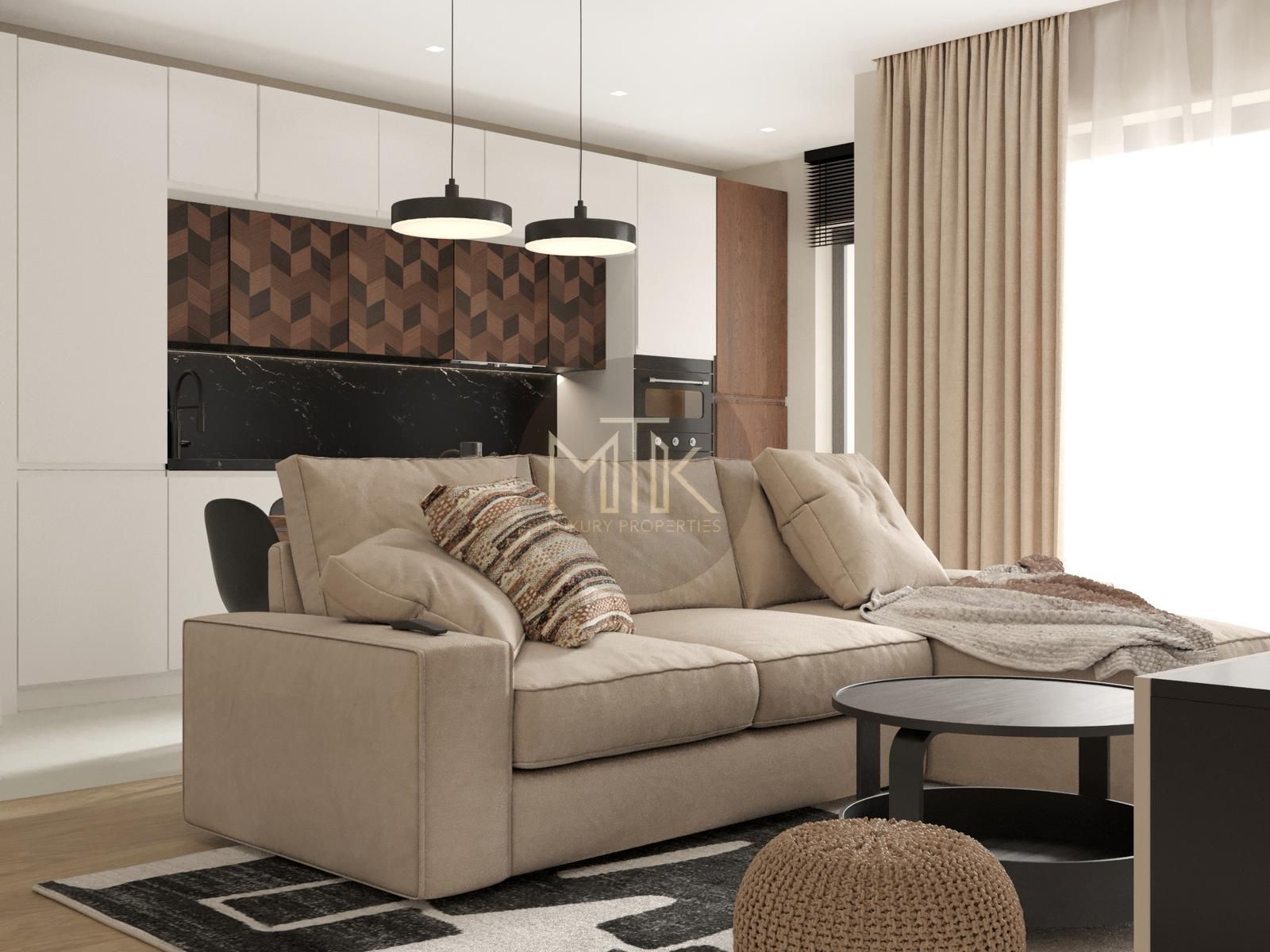 Apartamentul este compus din living cu zona de dining si iesire pe terasa de 11MP cu vedere spre interiorul complexului, bucatarie open space, un dormitor matrimonial cu dressing, o baie cu dus de tip walk in si un hol de acces cu dressing si spatii de depozitare.