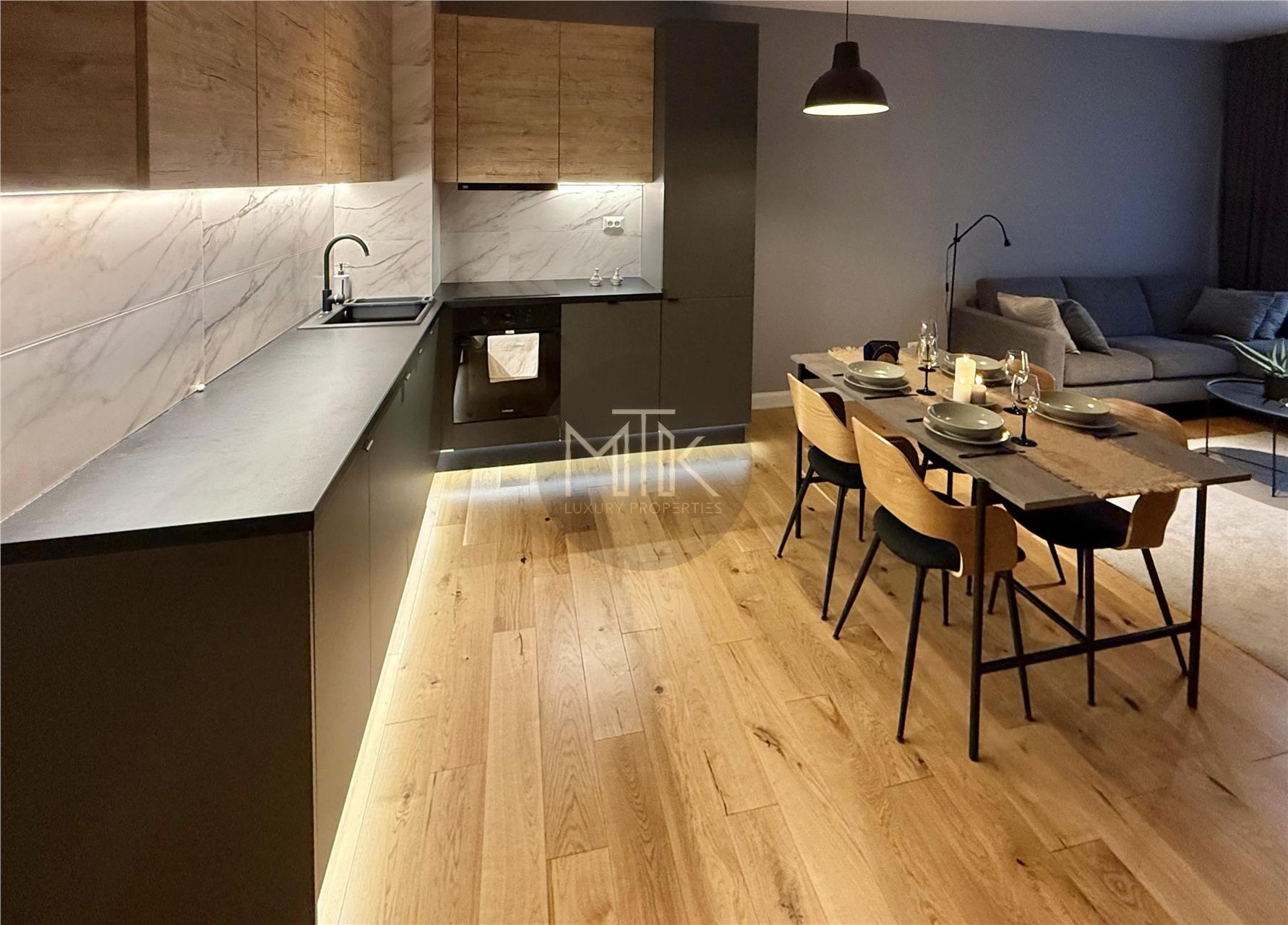 -Zona de zi: Living luminos si zona de dining, mobilate modern, cu acces direct catre balcon;