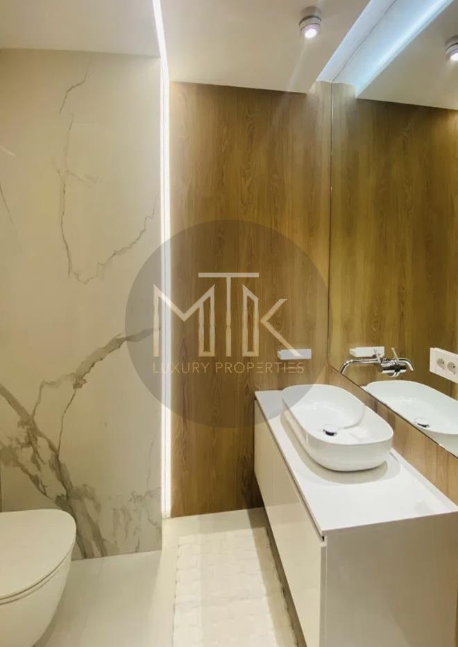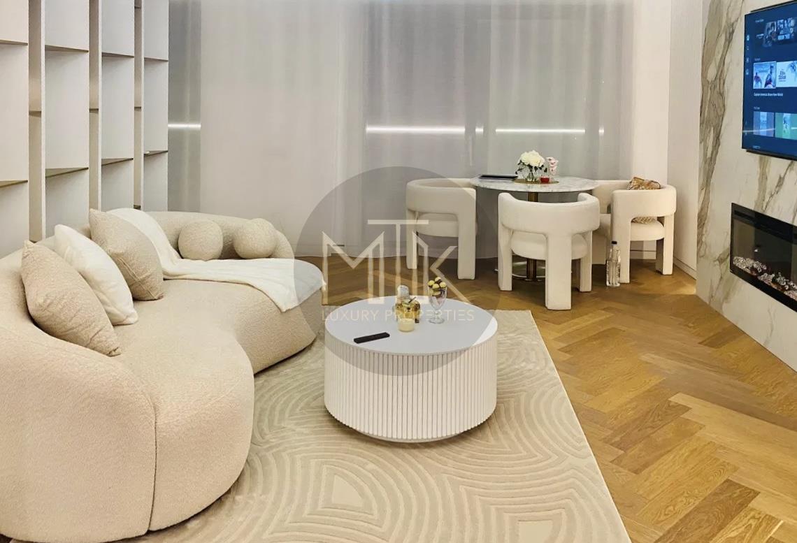 Apartamentul are o suprafata utila de 63 mp si o terasa generoasa de 19 mp, fiind situat la etajul 1/5 dintr-un imobil nou si modern, construit in anul 2024. Este compus dintr-un living luminos, dotat cu semineu electric decorativ si zona de dining, bucatarie moderna complet mobilata si utilata cu electrocasnice de top (inclusiv masina de spalat vase), un dormitor spatios cu dressing, doua bai cu finisaje premium, una dotata cu cabina de dus walk-in, masina de spalat rufe si uscator automat de rufe, iar cealalta baie este dotata cu cada. Toate piesele de mobilier si finisajele sunt noi, apartamentul aflandu-se la prima inchiriere.