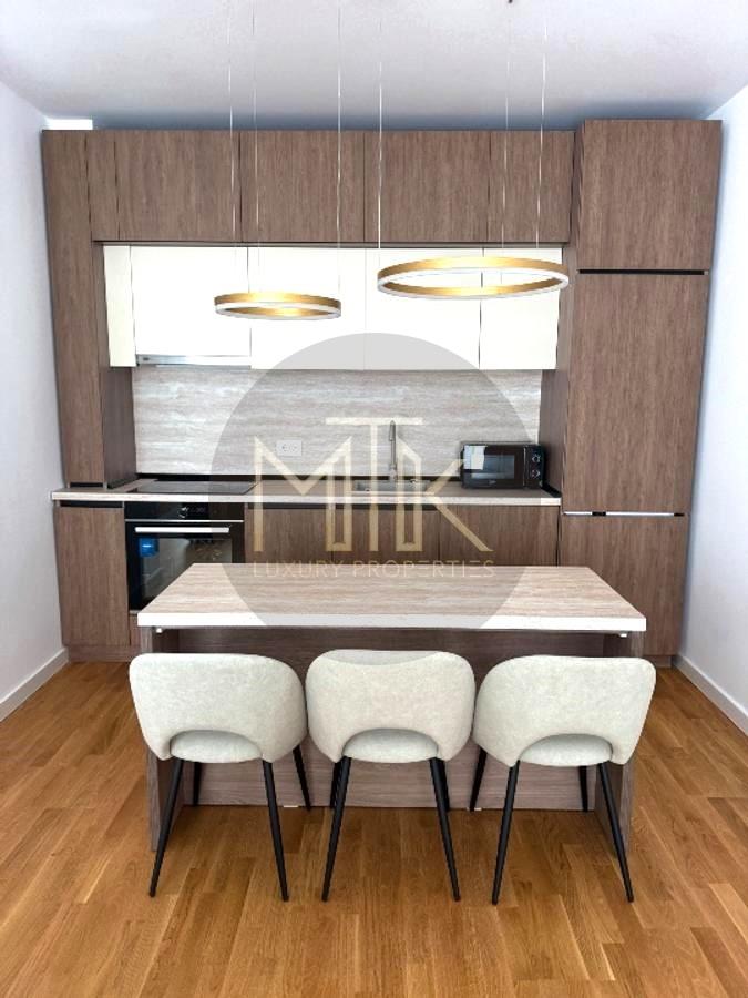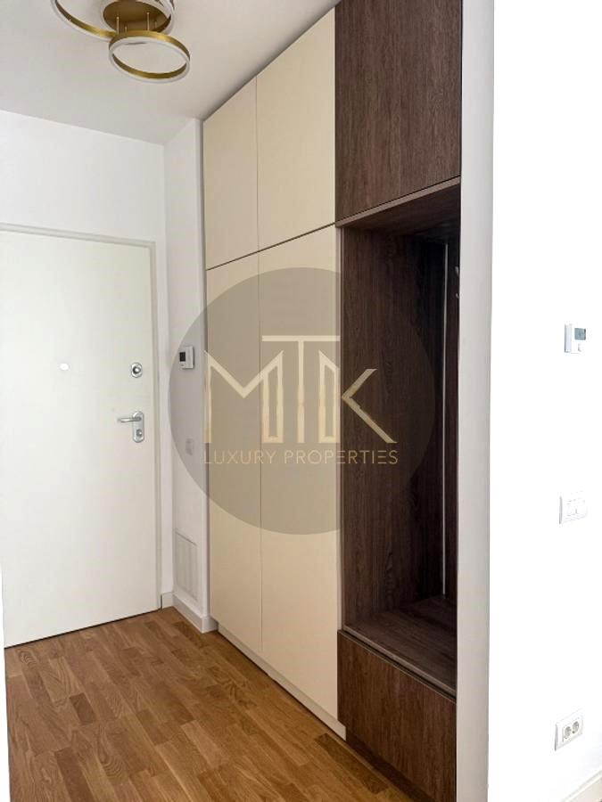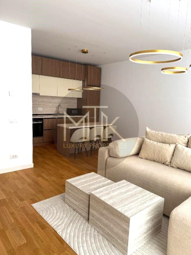 Apartamentul este la prima inchiriere, si este format dintr-un living luminos cu cu bucatarie open space, dormitor matrimonial cu dressing, baie cu dus de tip walk in, hol cu vestibul, balcon cu vederea spre interiorul complexului.
