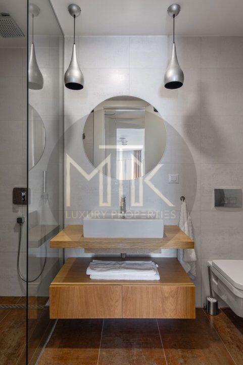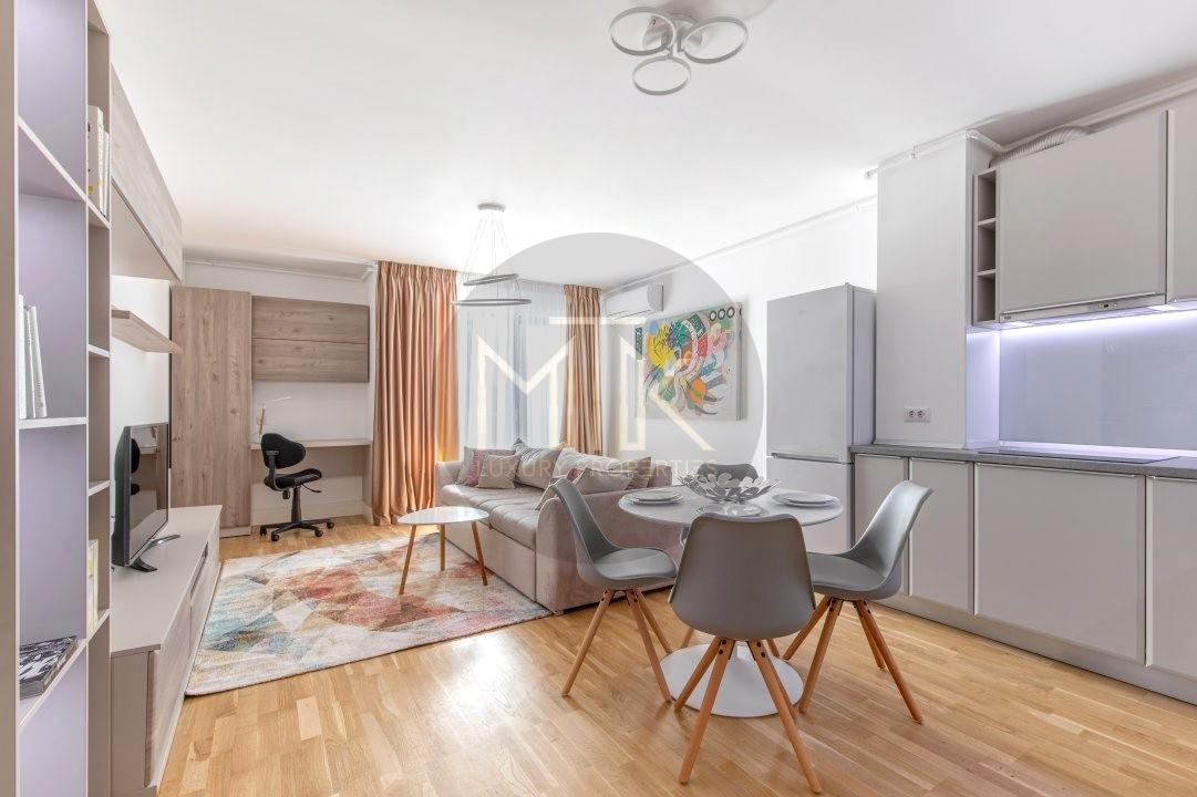 Apartamentul a fost amenajat cu stil si atentie la detalii. Mobilierul a fost ales cu grija si include piese de design contemporan si clasic, cu linii curate si materiale de calitate.