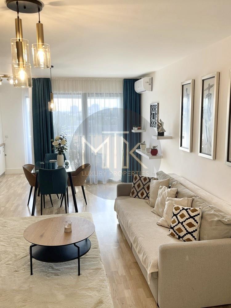 Apartamentul a fost amenajat cu stil si atentie la detalii. Mobilierul a fost ales cu grija si include piese de design contemporan si clasic, cu linii curate si materiale de calitate.