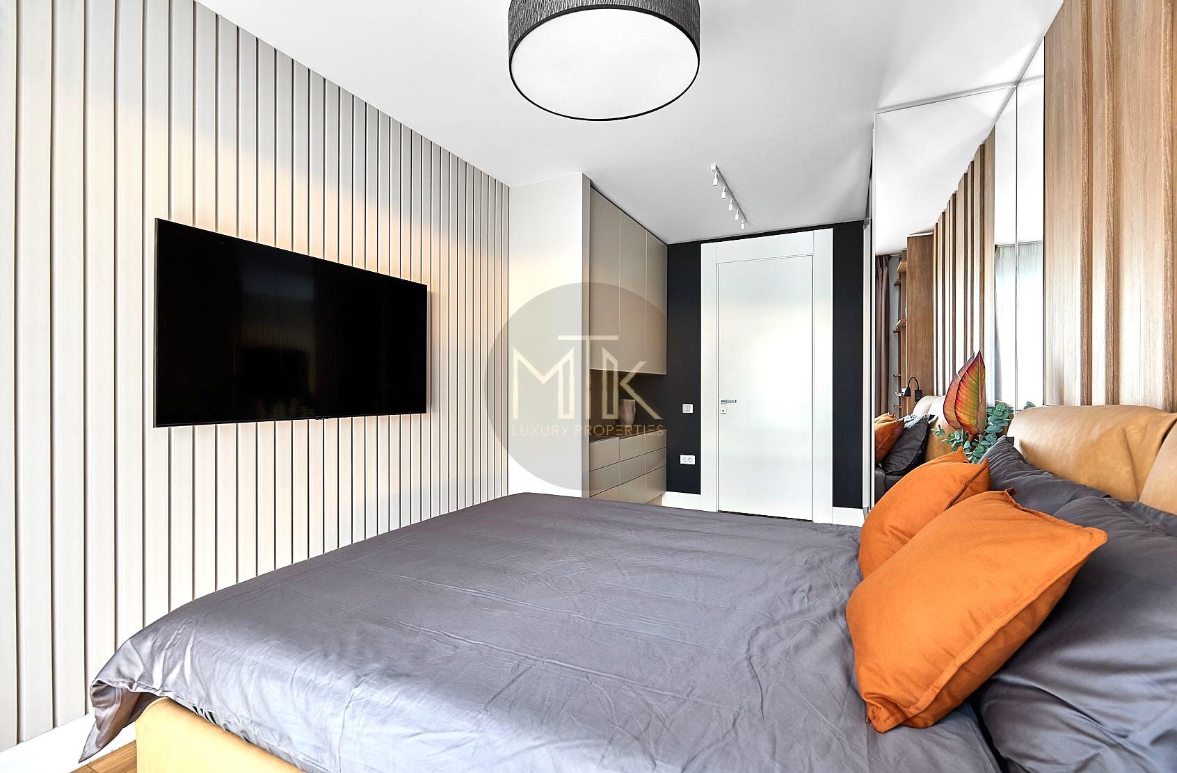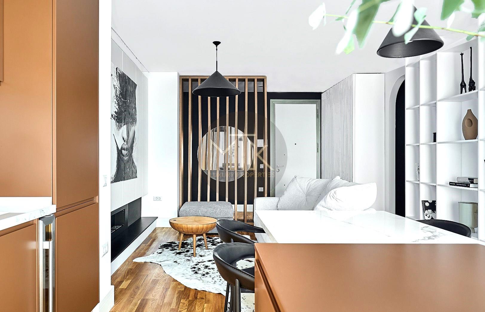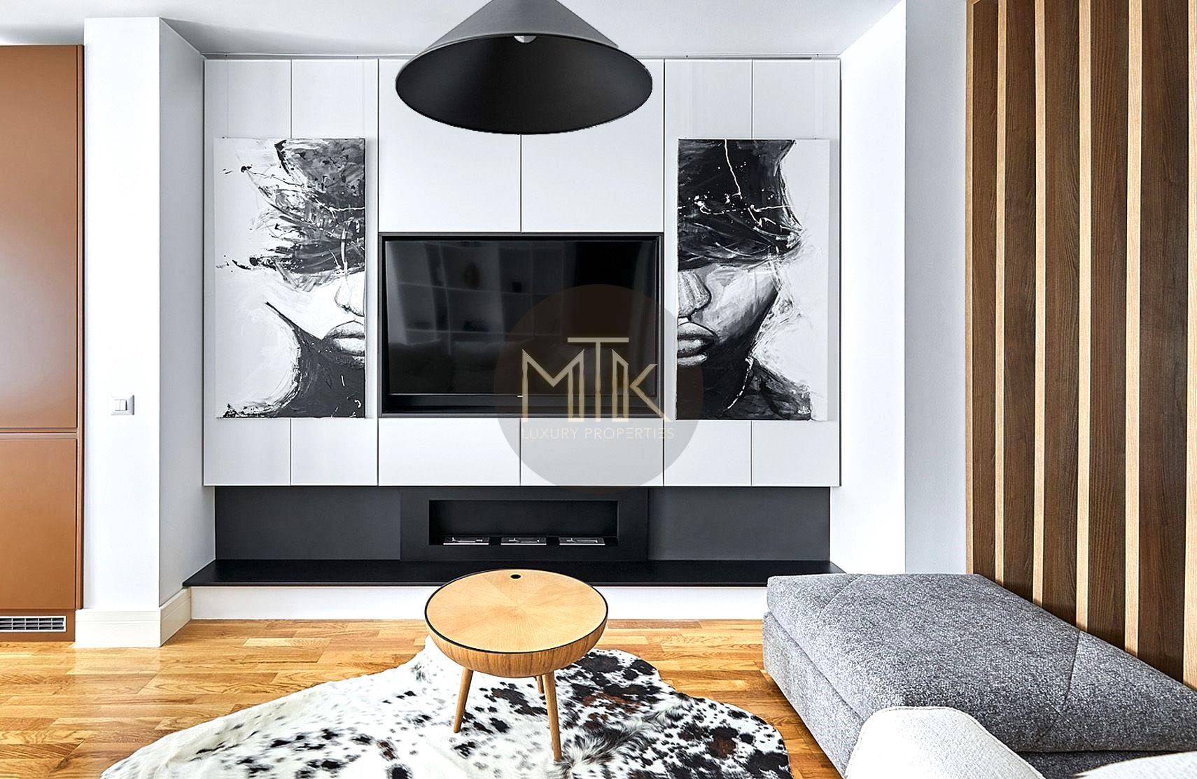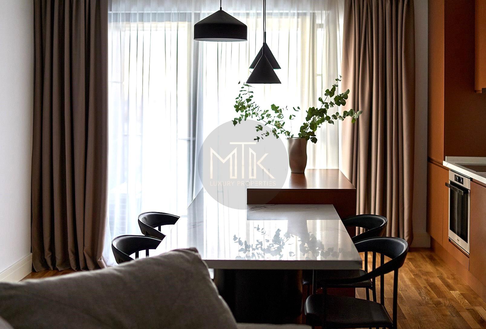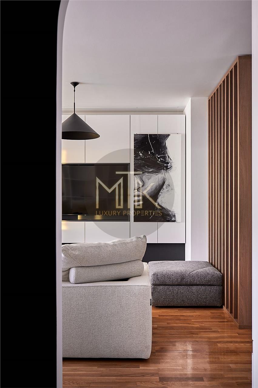 Apartamentul a fost amenajat cu stil si atentie la detalii. Mobilierul a fost ales cu grija si include piese de design contemporan si clasic, cu linii curate si materiale de calitate.
