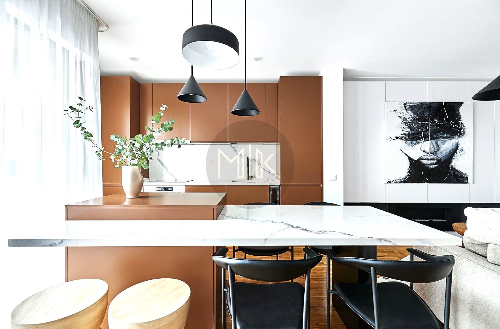 - Living spatios cu zona de dining si bucatarie open space cu insula