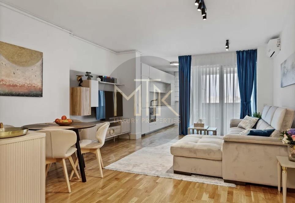 Apartamentul a fost amenajat cu stil si atentie la detalii. Mobilierul a fost ales cu grija si include piese de design contemporan si clasic, cu linii curate si materiale de calitate.