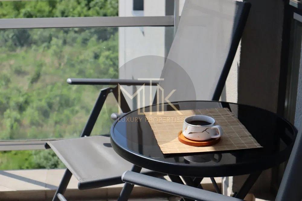 Apartamentul este situat la etajul 6 dintr-un imobil cu regim de inaltime P+11 si este dispus astfel: living spatios cu o bucatarie open space si o zona de dining, 1 dormitor cu dressing si baie proprie cu cada, 1 baie secundara, un hol de acces si o terasa cu vederea in exteriorul complexului.