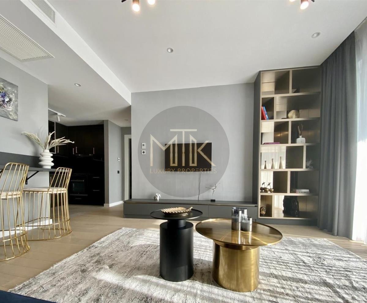 Apartamentul este situat la etajul 3, intr-un imobil cu regim de inaltime P+12 si este format dintr-un living generos cu zona de bar, o bucatarie open space, complet mobilata si utilata, un dormitor matrimonial cu dressing cu oglinzi, 1 baie cu cada, un hol de acces si o terasa de 16MP cu vedere panoramica asupra intregului oras.