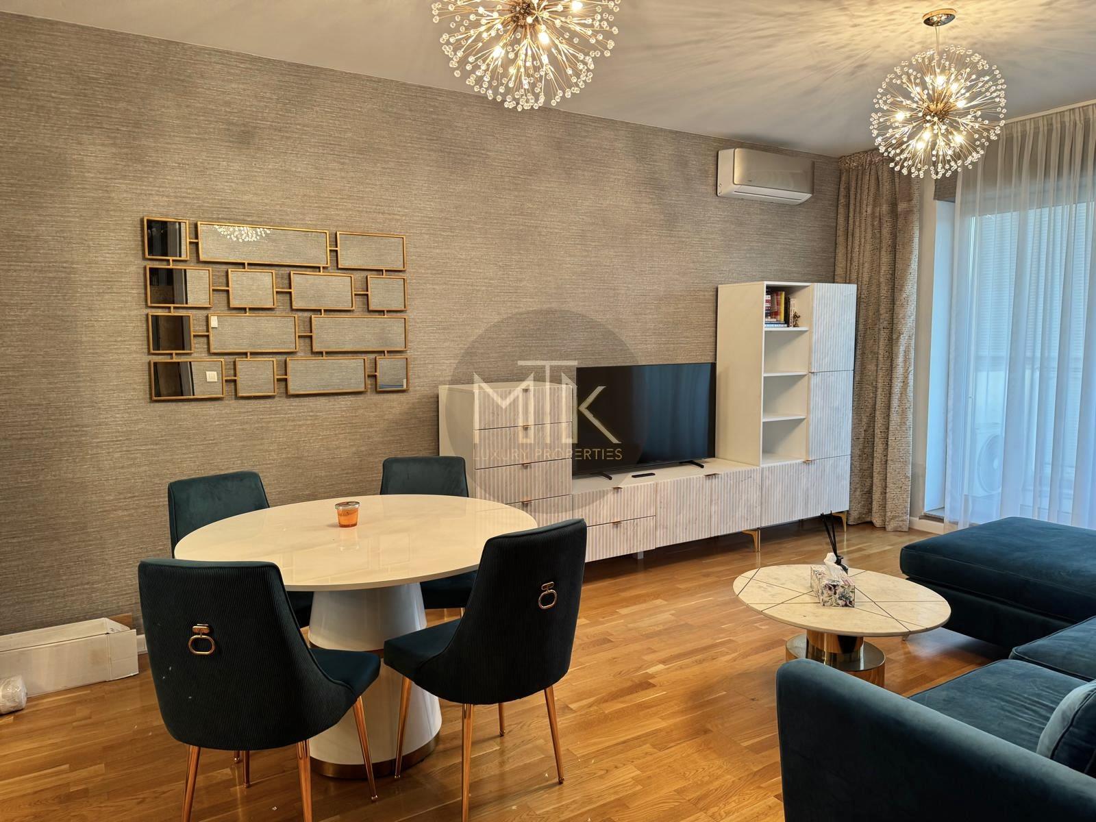 Acesta este compus dintr-un living spatios cu zona de dining, bucatarie inchisa, complet mobilata si utilata cu electrocasnice de ultima generatie, un dormitor cu dressing, o baie cu cada, un hol cu comoda pentru pantofi, cu oglinzi si o terasa perfecta pentru relaxare.