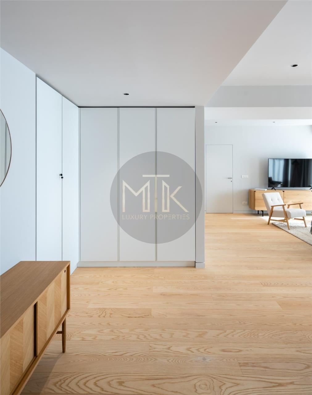 Spatiul interior imbina armonios utilul cu placutul, iar amenajarea ii ofera o amprenta deosebita. Cromatica unitara din intregul apartament este completata de mobilierul practic si functional, iar electrocasnicele au fost integrate perfect pentru a contura un design minimalist.