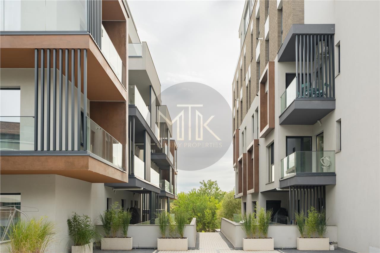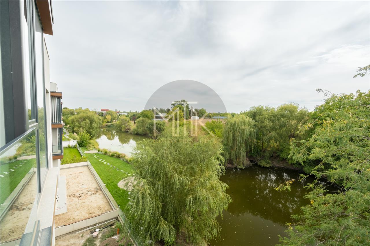 Apartamentul este compus dintr-un living luminos si spatios cu zona de dining, o bucatarie open space, dormitor matrimonial cu dressing , o baie cu dus de tip walk in, un hol, terasa mobilata cu acces din living si vederea spre lac.
