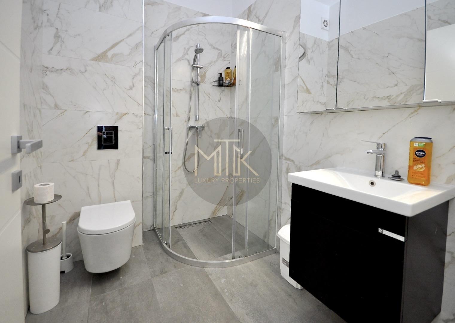 Apartamentul beneficiaza de parchet triplu stratificat, gresie Marazzi/Cezar, tamplarie interioara Pinum/Flossen, tamplarie exterioara tripan Shucco/Alumil/Salamander, obiecte sanitare Rocca, incalzire in pardoseala Tiemme Italia, central Imergas, intrerupatoare Gewis/Legrand, balustrade din sticla securizata, usi anti foc Ninz.