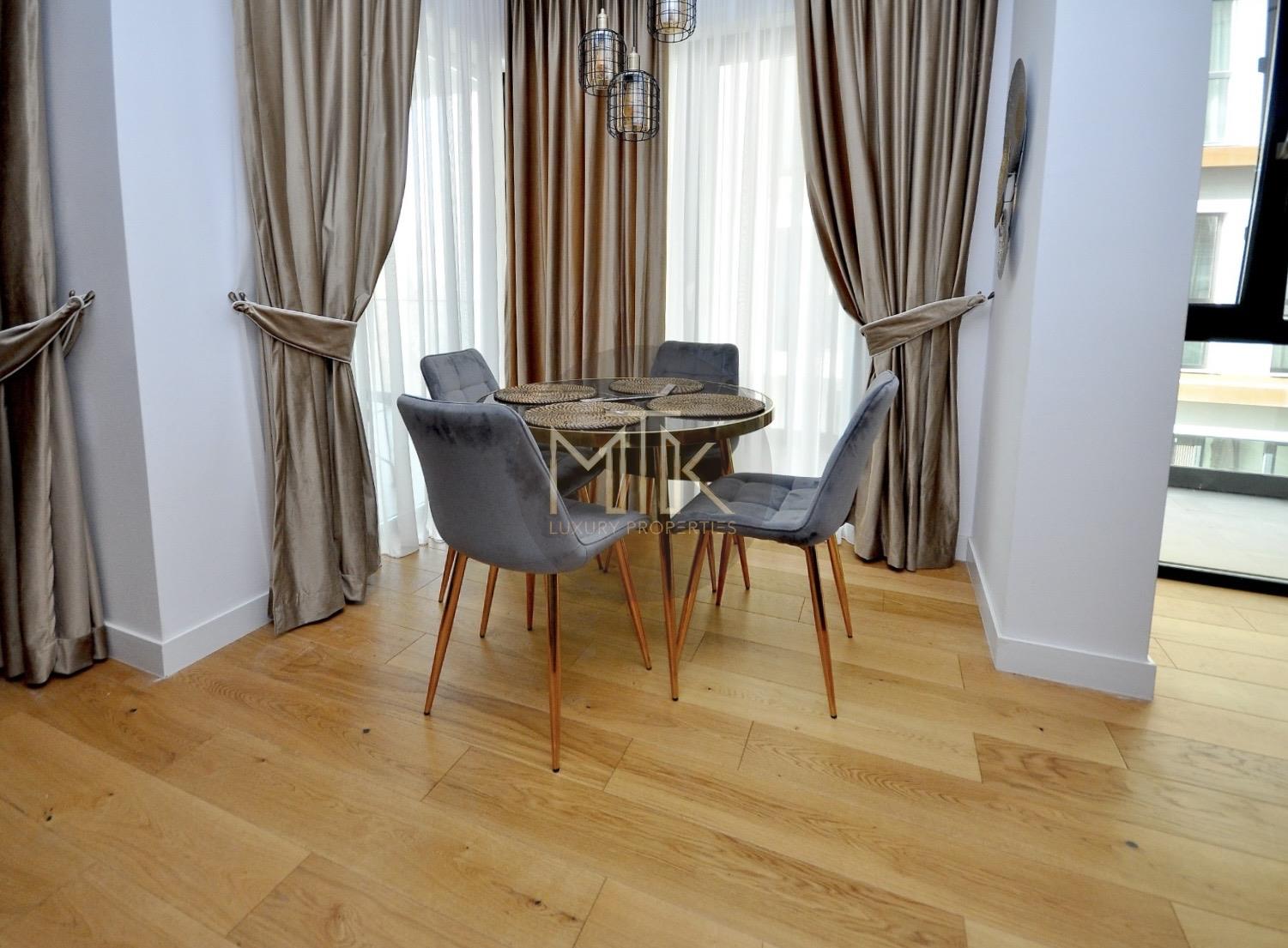 Apartamentul este complet mobilat custom made si utilat conform unui concept de design interior implementat si dezvoltat de un birou de arhitectura.