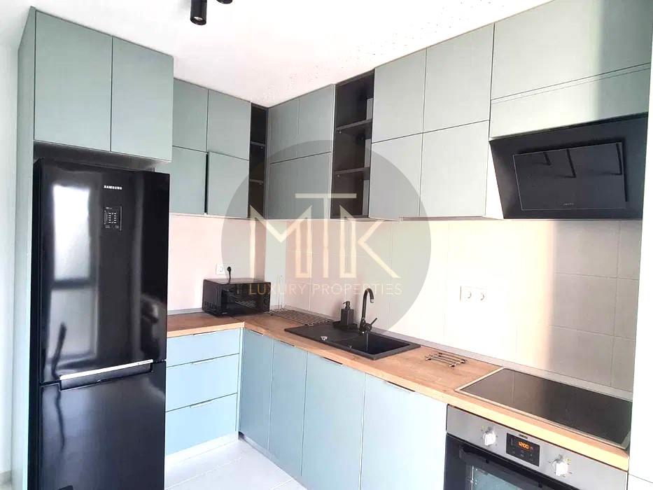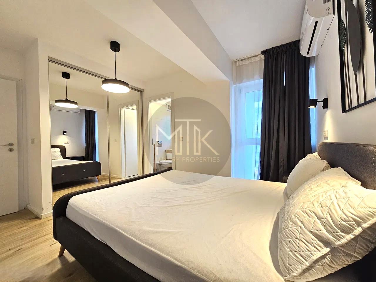 Apartamentul este situat la etajul 2 dintr-un imobil cu regim de inaltime P+11 si este dispus astfel: living spatios cu o bucatarie open space si o zona de dining, 1 dormitor, 1 baie cu dus de tip walk in, un hol de acces cu dressing cu oglinzi si spatii de depozitare.