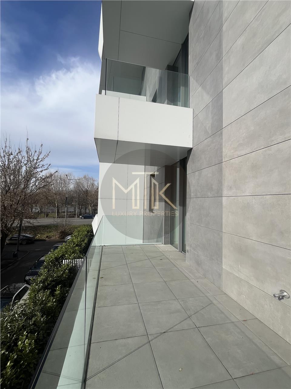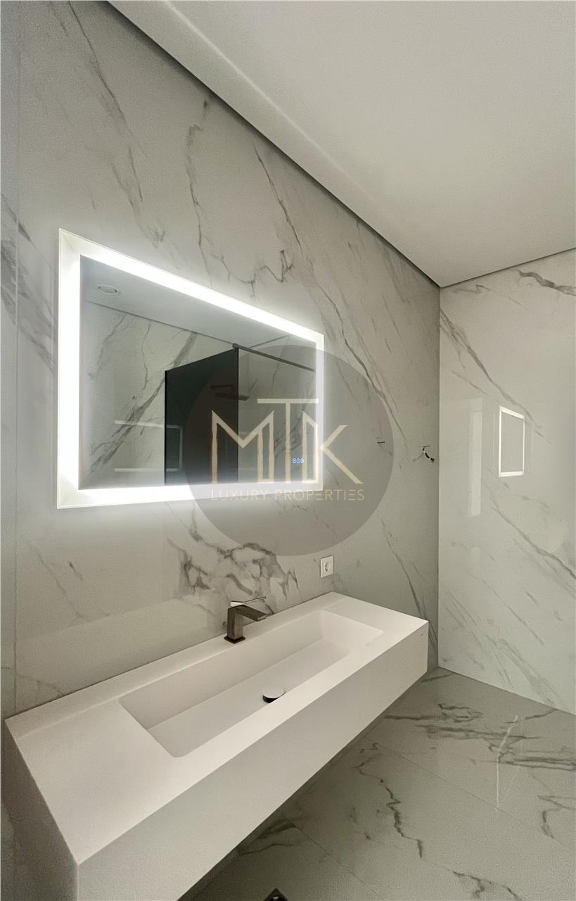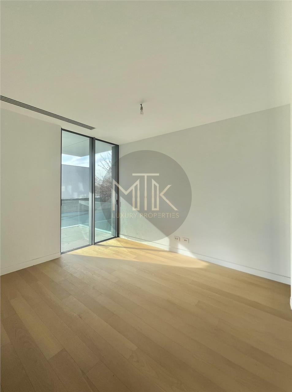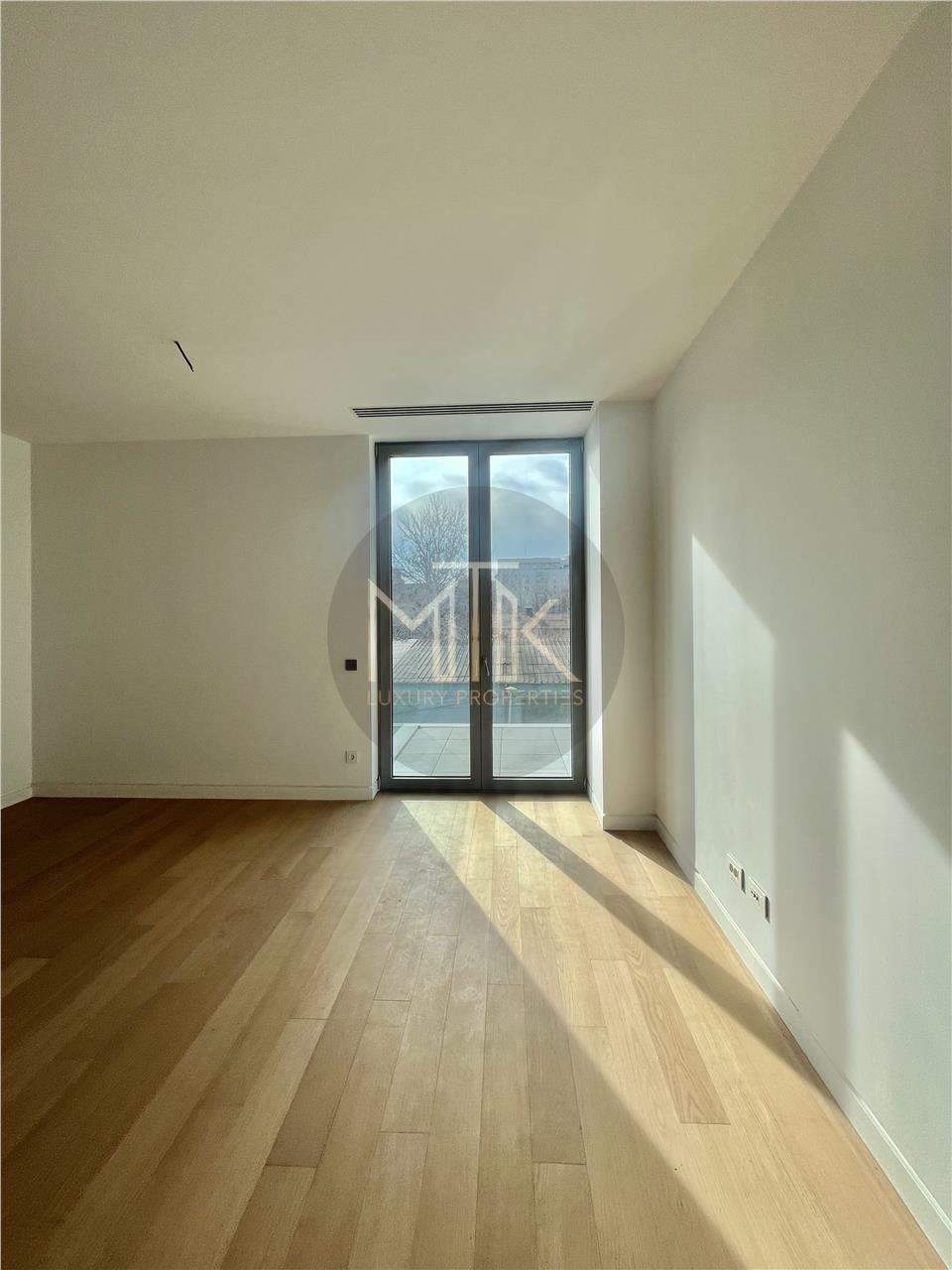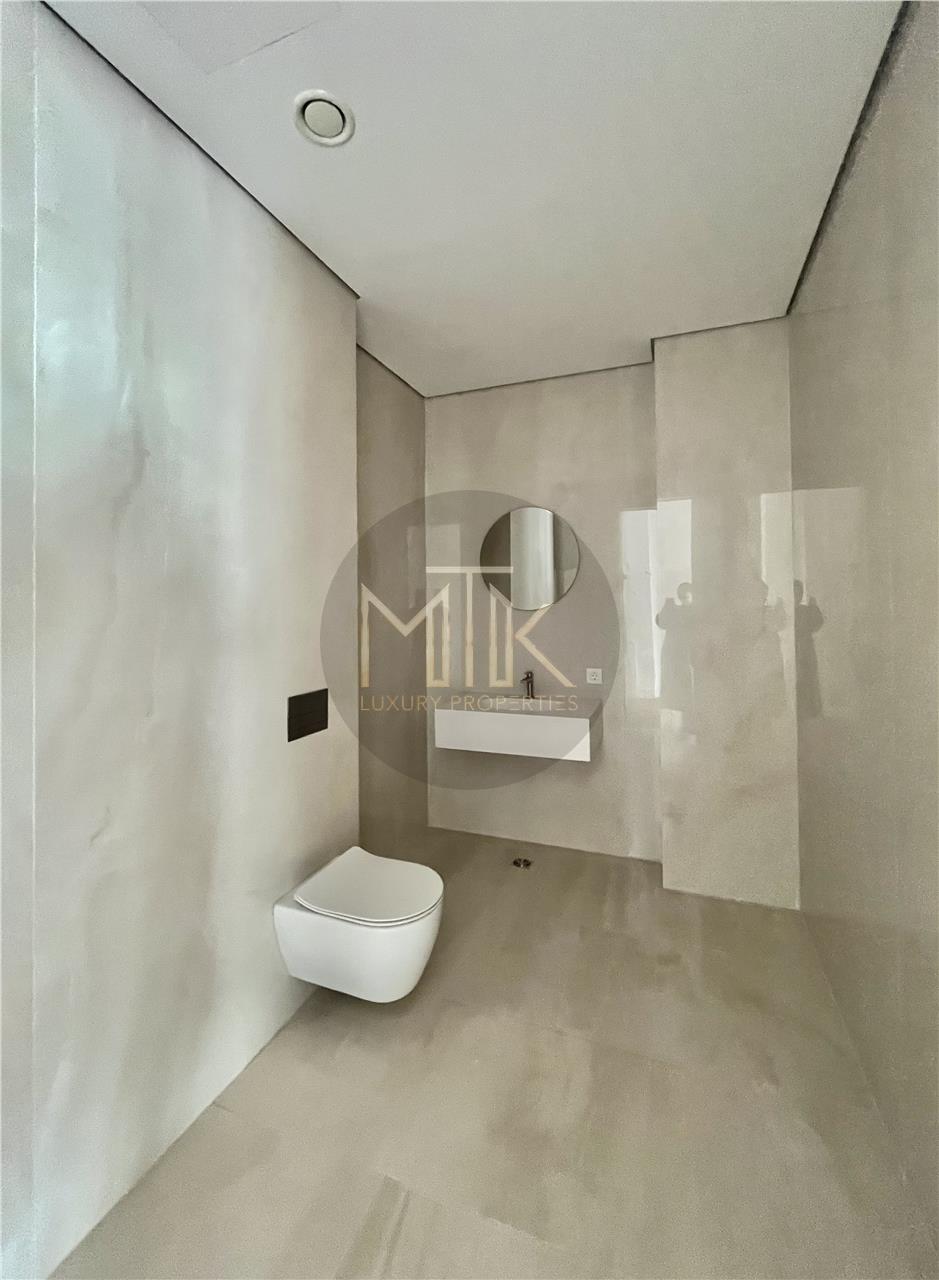 Proprietatea face parte dintr-un imobil boutique recunoscut pentru standardele tehnice ridicate si designul avangardist, unde calitatea constructiei se reflecta in fatada ventilata cu eficienta termica superioara si in finisajele interioare atent alese, inclusiv usi filomuro integrate discret in pereti pentru un aspect curat si minimalist. Apartamentul beneficiaza de incalzire in pardoseala, sistem de climatizare Daikin VRV pentru incalzire si racire, suprafete vitrate ample cu tamplarie din aluminiu, pardoseli din lemn triplu stratificat, echipamente electrice ABB/Gewiss, infrastructura de cablare Ethernet si un sistem Smart Home complet, care permite controlul iluminatului, temperaturii, jaluzelelor si securitatii prin aplicatie mobila.