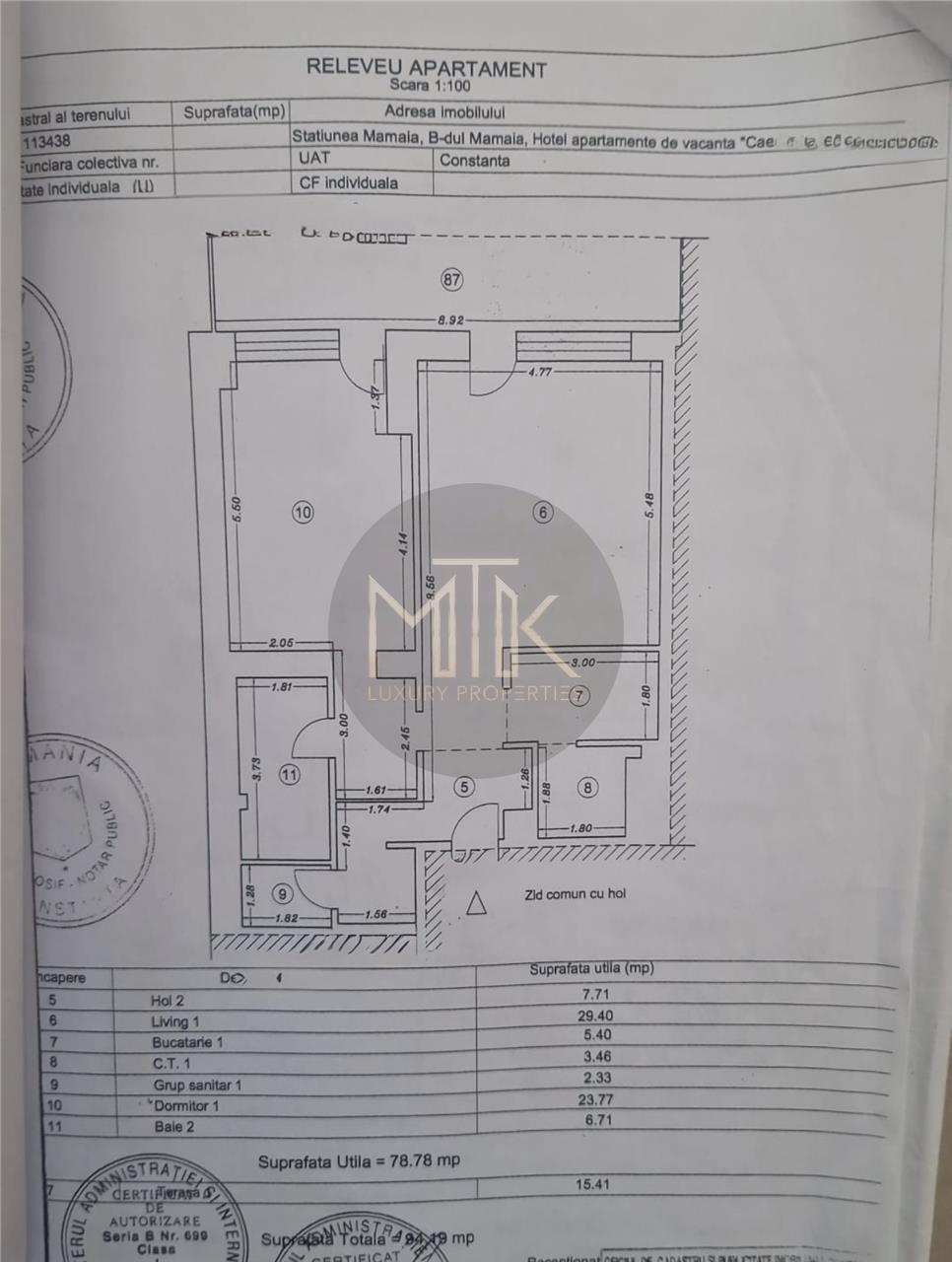 Proprietatea are o suprafata utila de 79 mp si o suprafata totala de aproximativ 94 mp, fiind gandita pentru confort, relaxare si investitie premium la mare.
