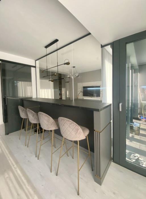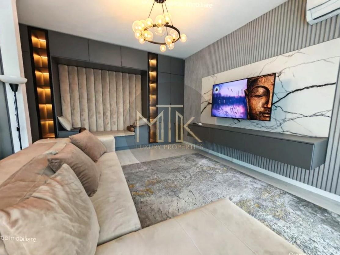 MtK Real Estate are placerea de a va propune spre inchiriere un apartament de 3 camere, mobilat LUX, aflat in ansamblul Cloud 9 Residence. ?Ferestrele pana la podea iti dezvaluie o priveliste unica, iar peretele de sticla care delimiteaza sufrageria deschide intreg spatiul apartamentului.