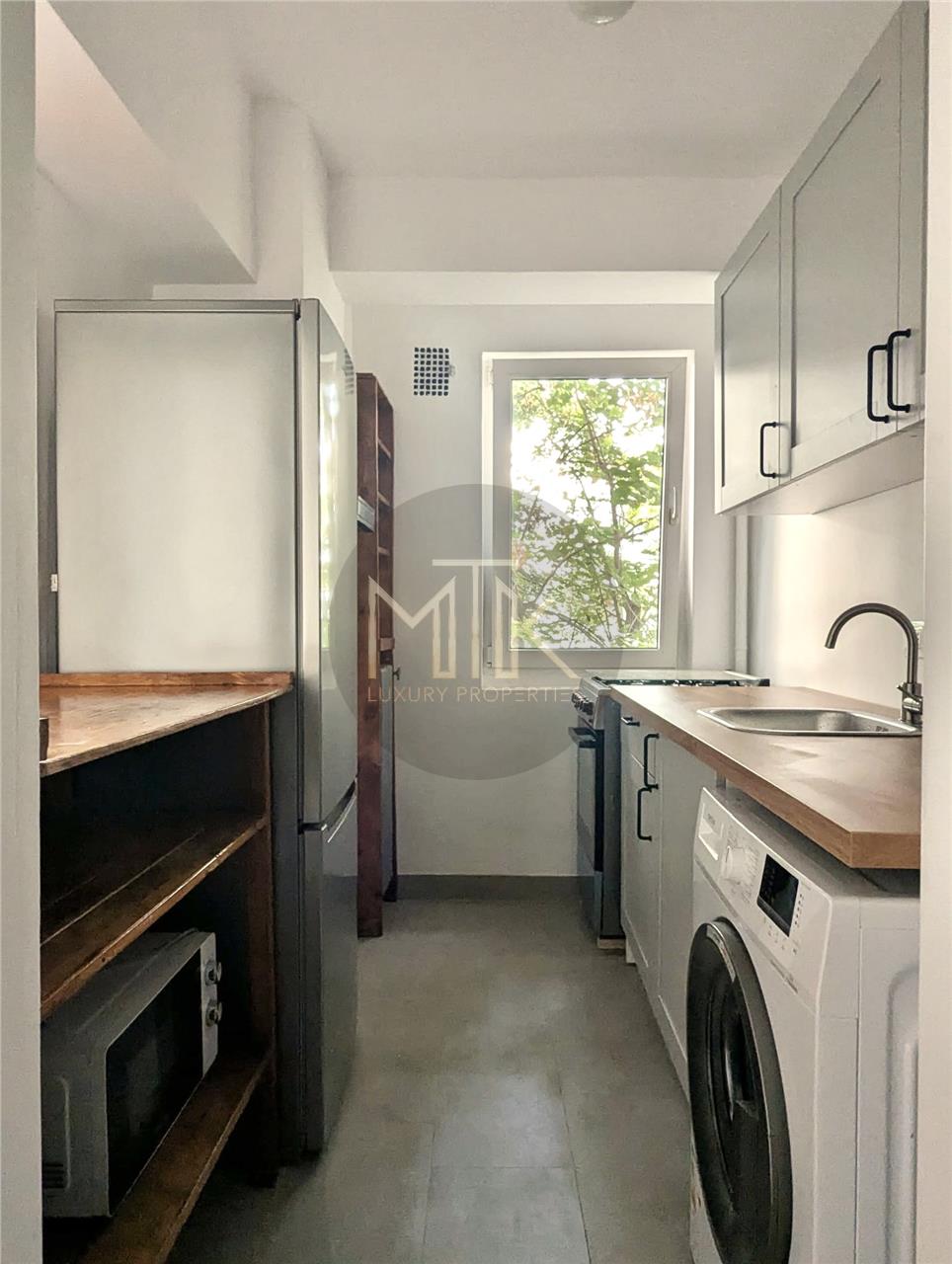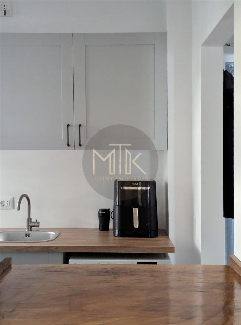-Bucataria este complet mobilata si utilata, pastrand o nota eleganta, cu finisaje moderne si detalii rafinate;