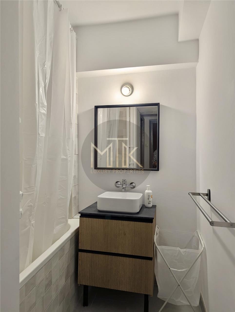 -Baia este moderna, dotata cu cada si finisaje de calitate, combinand confortul contemporan cu eleganta simpla a designului clasic.