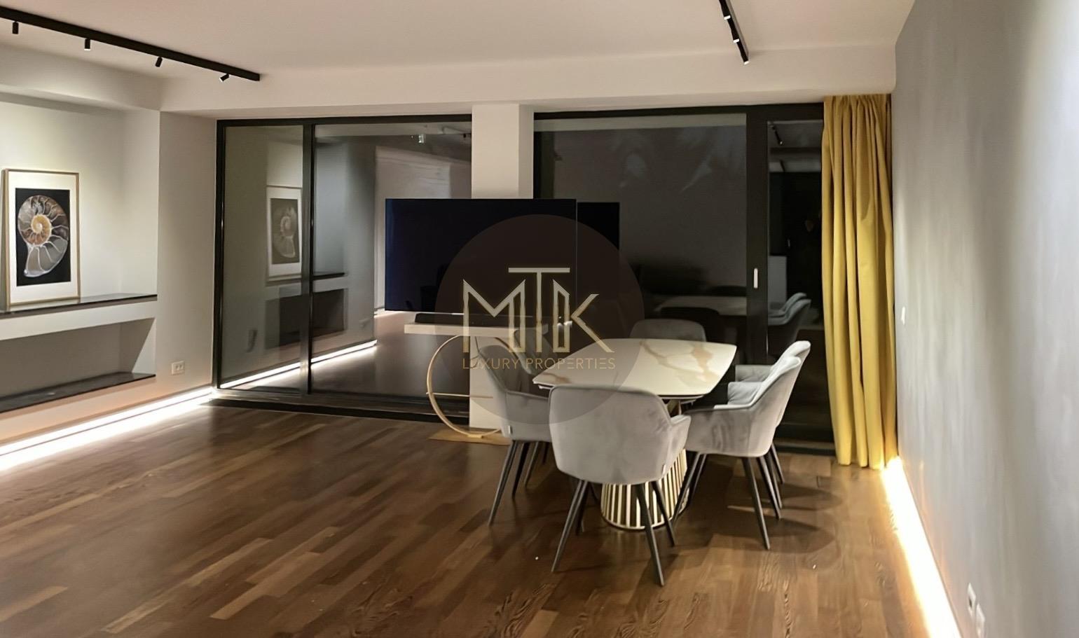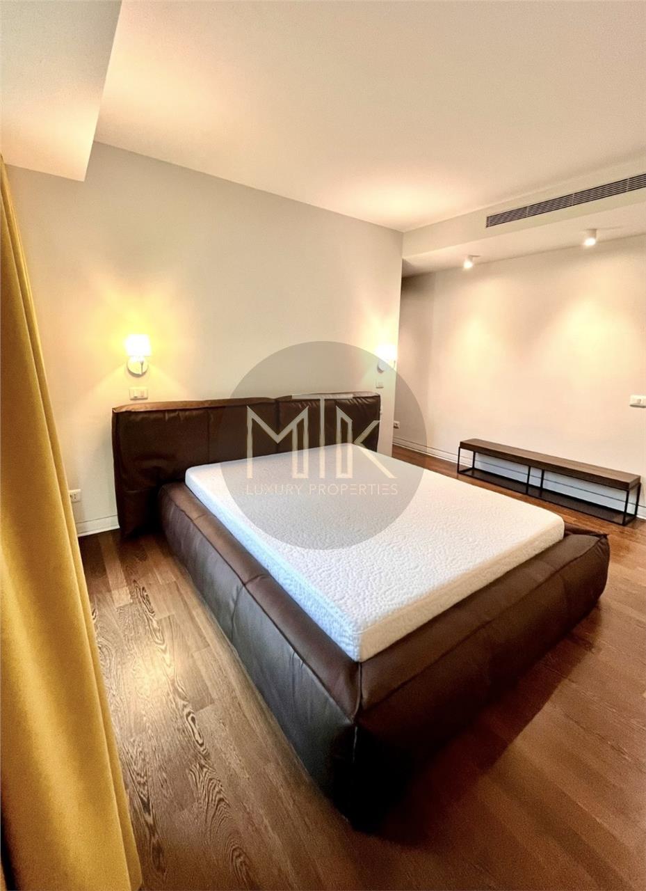 Apartamentul este format dintr-un living spatios de 34MP cu zona de dining, bucatarie inchisa mobilata si utilata, 2 dormitoare matrimoniale cu dressinguri, 2 bai dintre care una cu cada si o baie cu dus de tip walk in, un hol de acces, 2 terase de 9 mp si 5mp cu vedere libera. Acest apartament impresioneaza prin designul sau modern dar si prin spatiul eficient compartimentat astfel incat sa te bucuri de confort. Apartamentul este dotat cu centrala proprie, parchet din lemn natural, usi Filomuro, iar camerele beneficiaza de aer conditionat atat de necesar in zilele toride de vara.