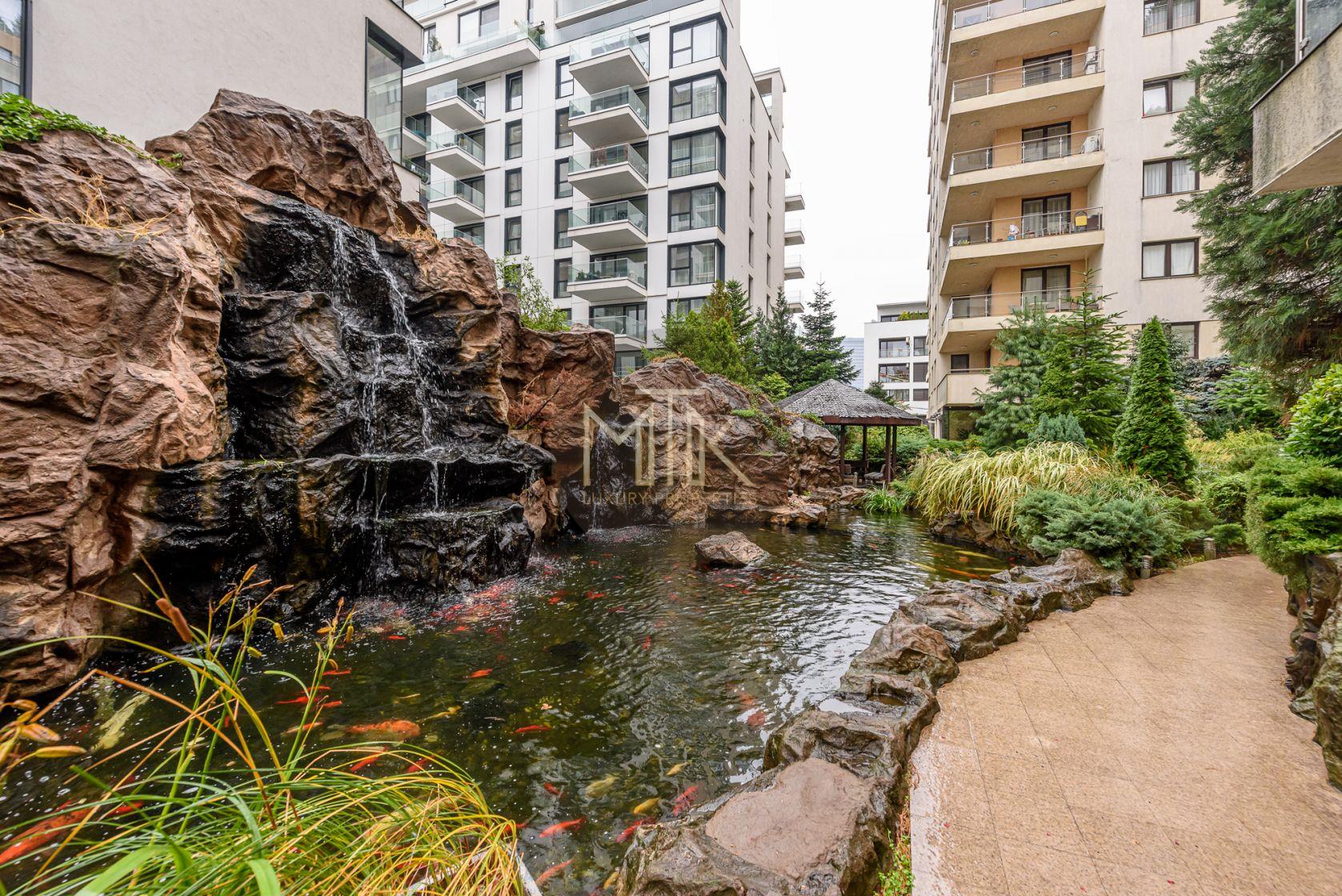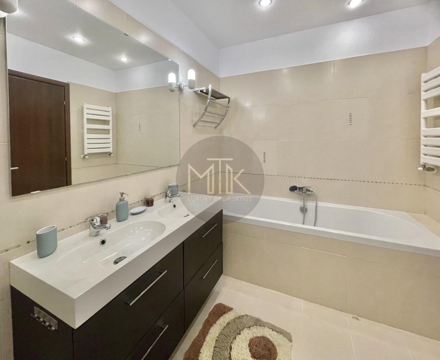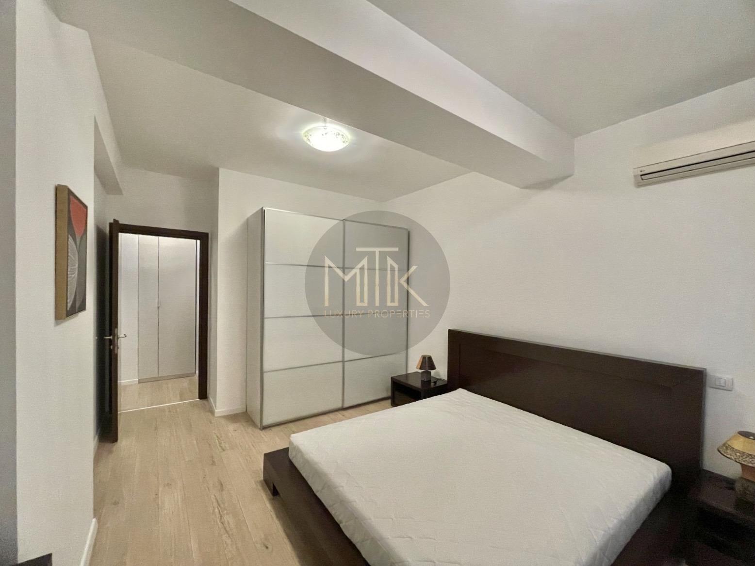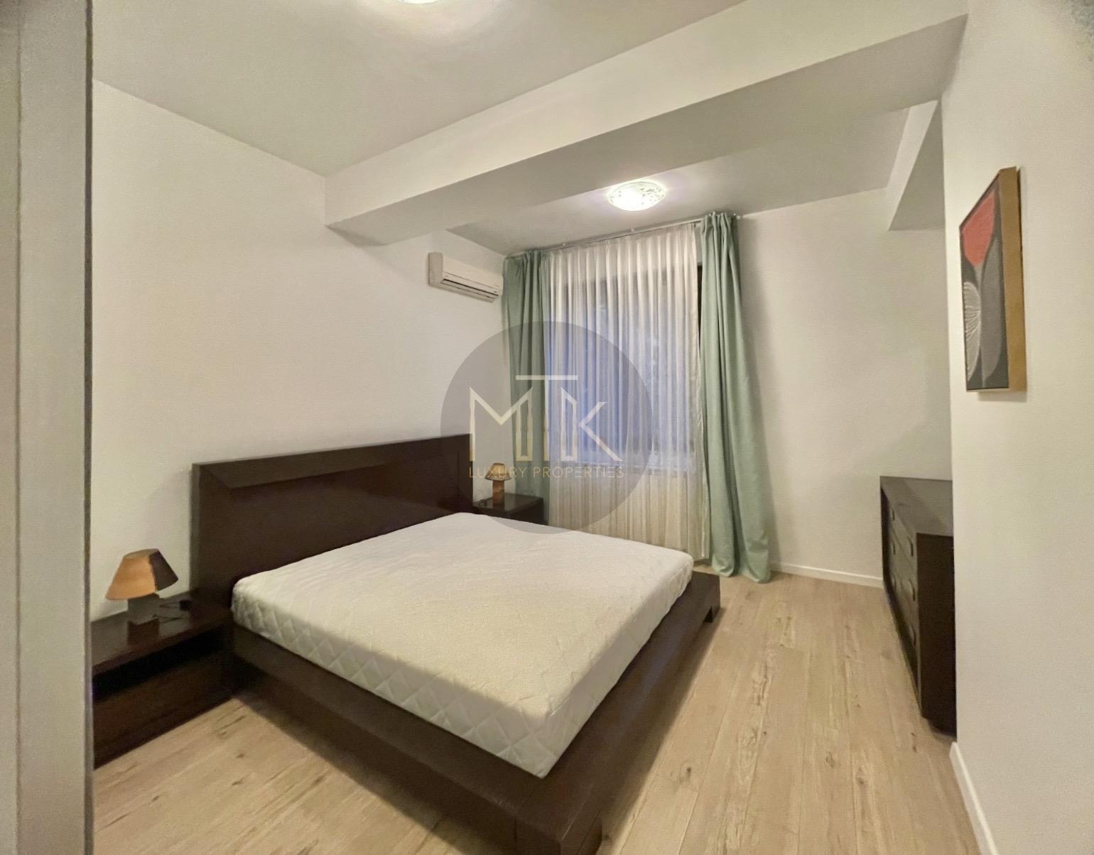 Apartamentul este compartimentat eficient, oferind un living generos si luminos ce comunica armonios cu zona de dining si bucataria open-space, complet mobilata si utilata cu electrocasnice moderne (inclusiv masina de spalat vase). Zona de noapte este compusa din doua dormitoare spatioase (unul dintre el dotat cu pat king-size si un dressing incapator pentru organizare optima si unul nemobilat, unde poti eficientiza spatiul asa cum iti doresti - dormitor, birou, camera de joaca, hobby etc) la care se adauga doua bai finisate modern (una dotata cu cada, iar cealalta cu cabina de dus) si un balcon placut. Pentru un confort termic sporit, fiecare camera este dotata cu aer conditionat. Accesul pe terasa se face din living, oferind o panorama relaxanta asupra gradinii interioare cu alei, foisor si helesteu cu pesti – o oaza unica de liniste si racoare in mijlocul orasului.