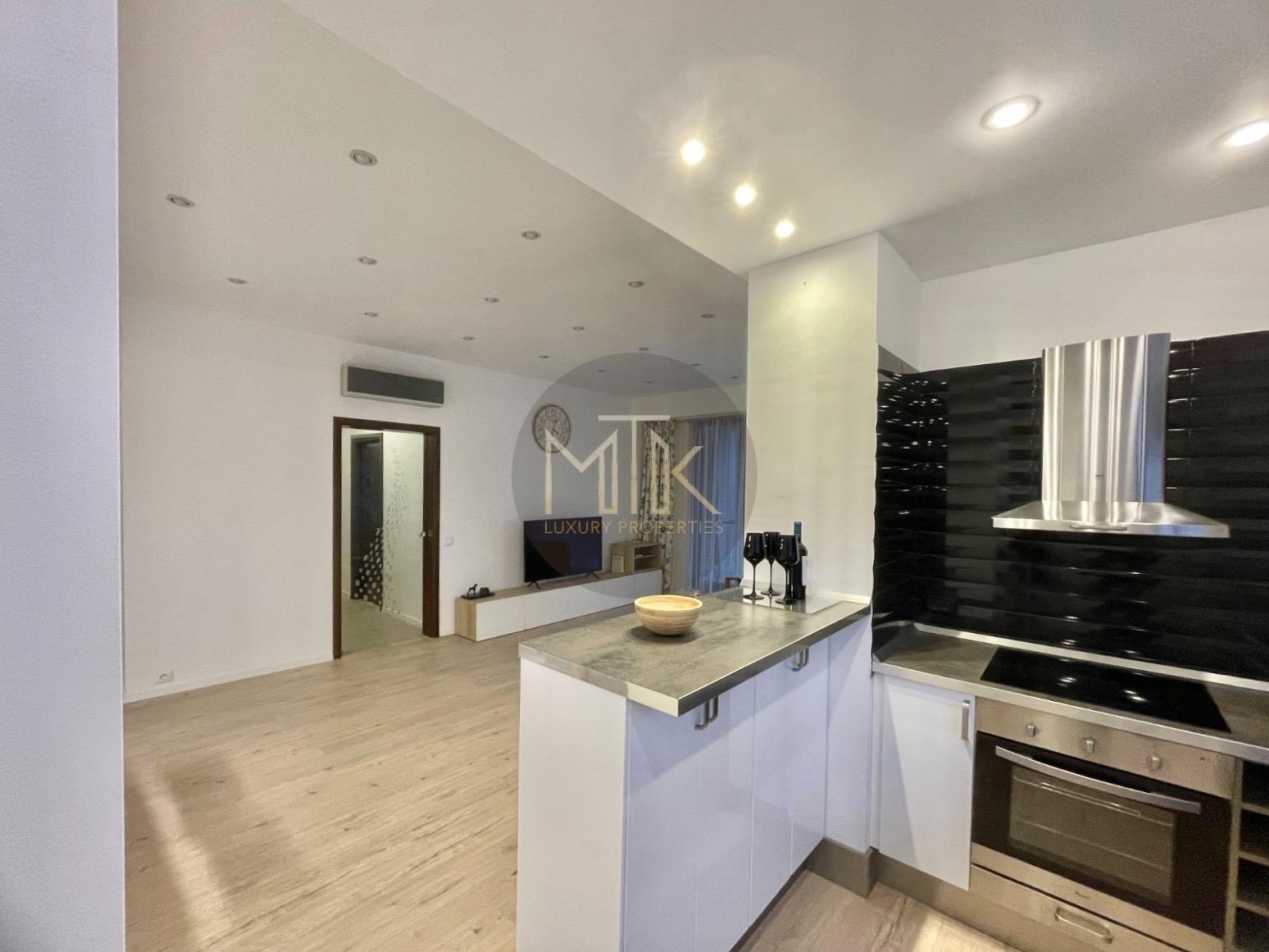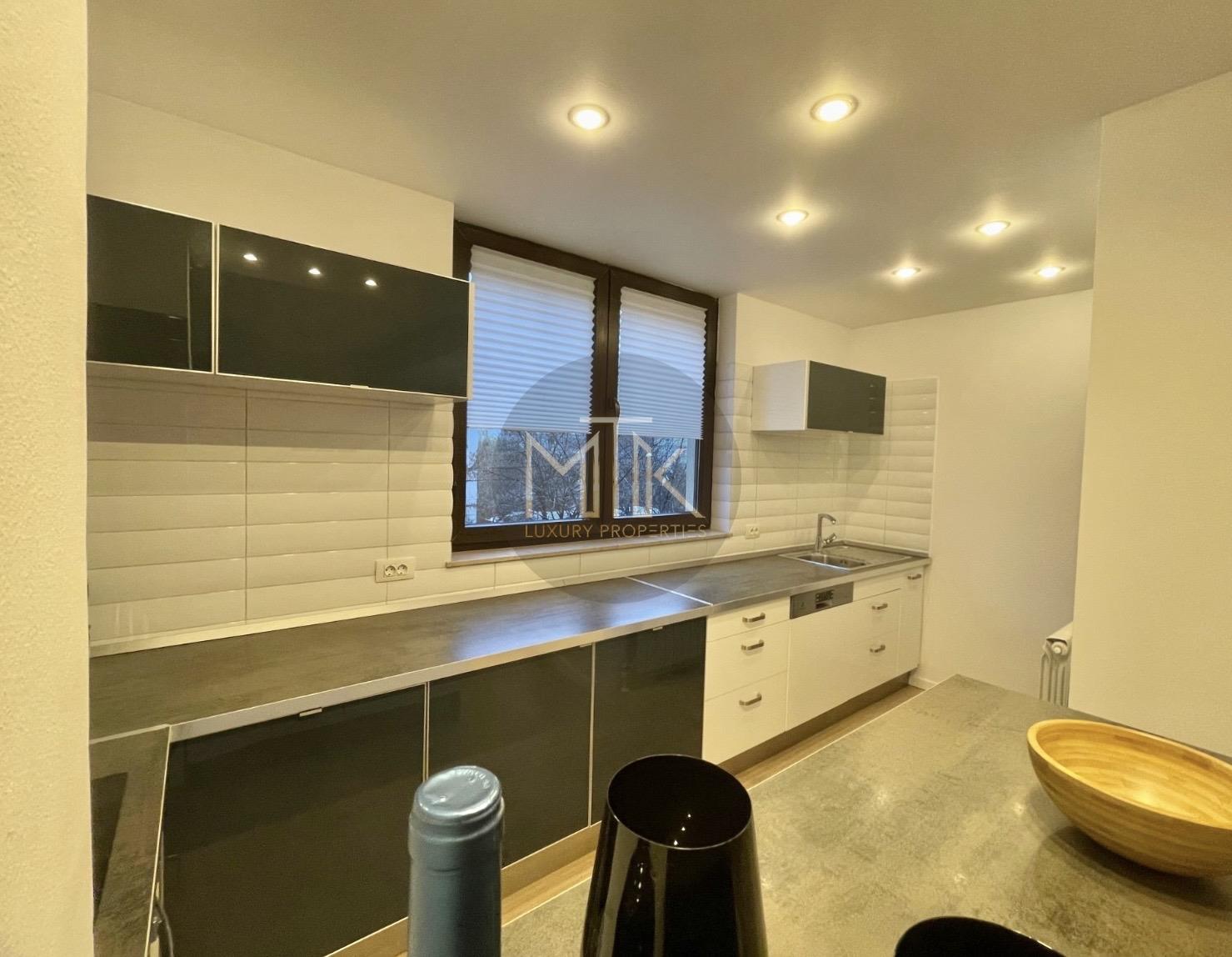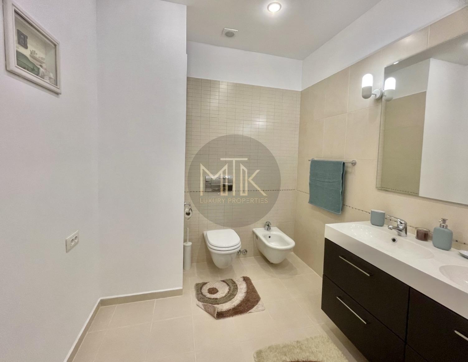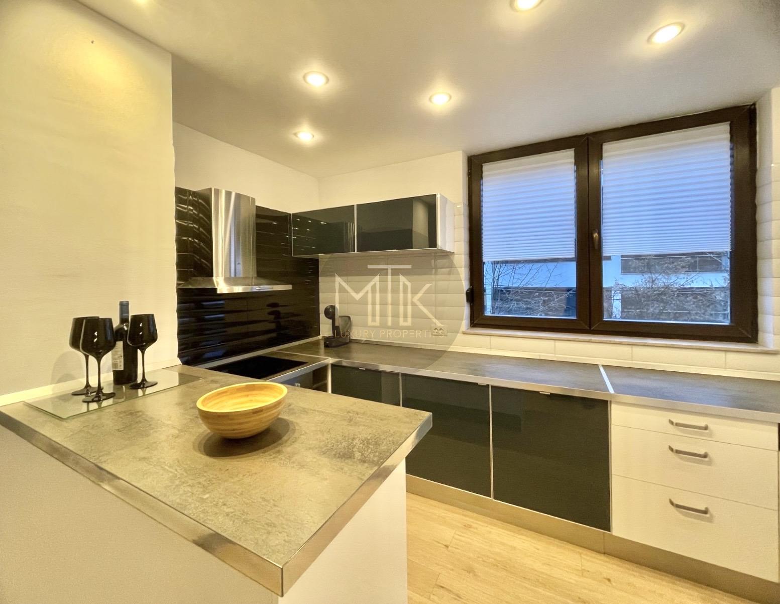 Apartamentul este compartimentat eficient, oferind un living generos si luminos ce comunica armonios cu zona de dining si bucataria open-space, complet mobilata si utilata cu electrocasnice moderne (inclusiv masina de spalat vase). Zona de noapte este compusa din doua dormitoare spatioase (unul dintre el dotat cu pat king-size si un dressing incapator pentru organizare optima si unul nemobilat, unde poti eficientiza spatiul asa cum iti doresti - dormitor, birou, camera de joaca, hobby etc) la care se adauga doua bai finisate modern (una dotata cu cada, iar cealalta cu cabina de dus) si un balcon placut. Pentru un confort termic sporit, fiecare camera este dotata cu aer conditionat. Accesul pe terasa se face din living, oferind o panorama relaxanta asupra gradinii interioare cu alei, foisor si helesteu cu pesti – o oaza unica de liniste si racoare in mijlocul orasului.