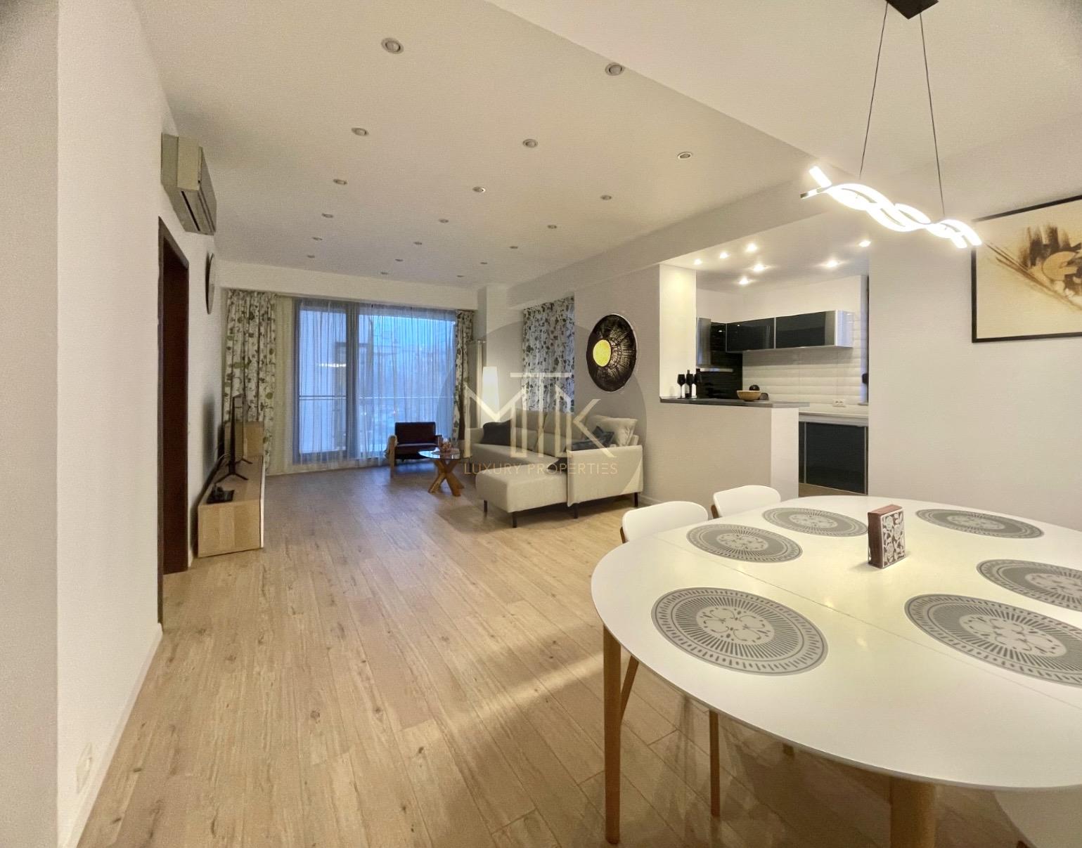 Apartamentul are o suprafata utila generoasa de 105 mp (135 mp construiti) si o compartimentare decomandata, fiind ideal pentru cei care cauta spatiu si eleganta intr-un cadru modern.