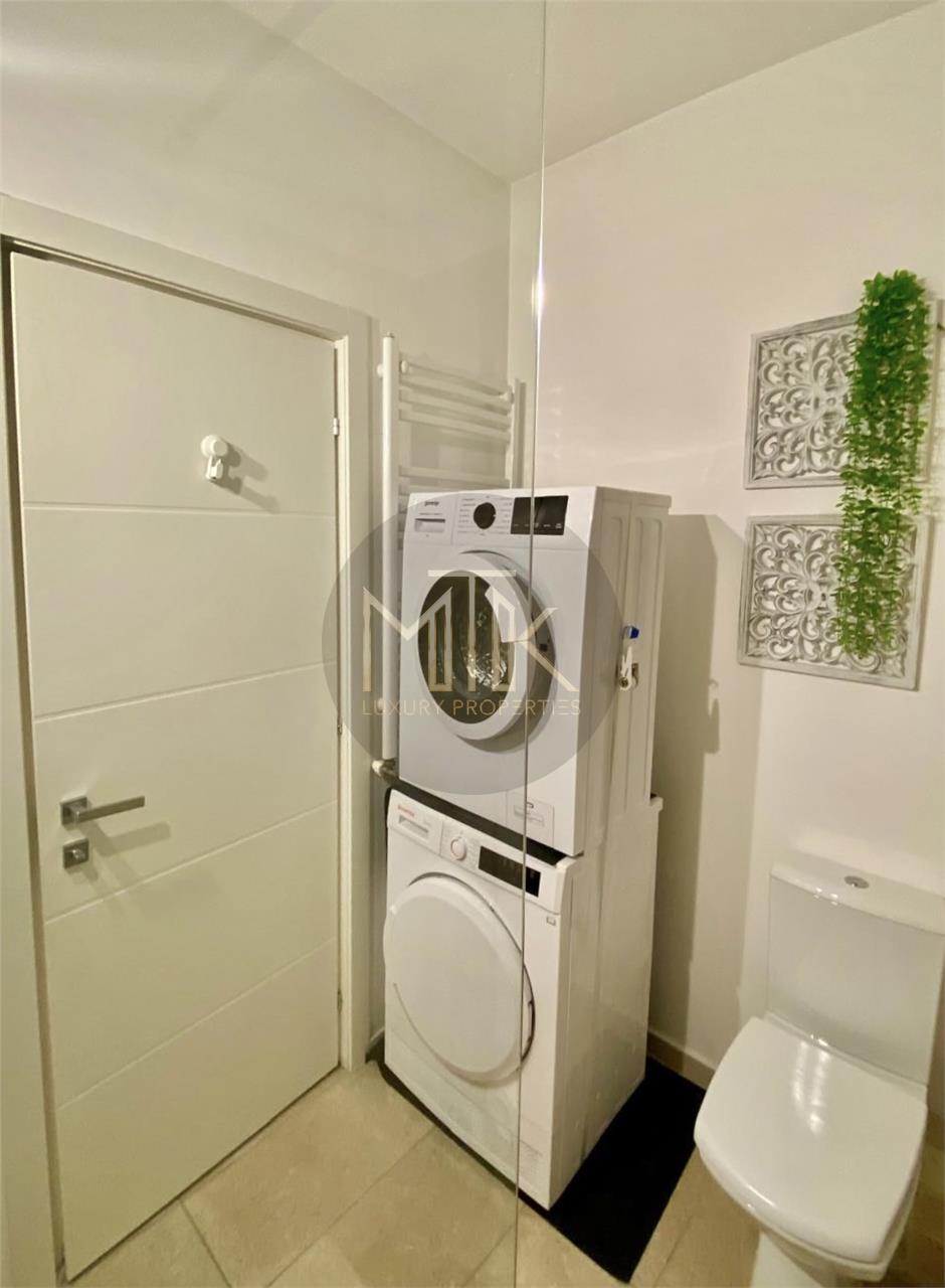 Dotarile sunt de calitate superioara: aer conditionat in living si dormitor, 2 televizoare (120 cm), masina de spalat si uscator de rufe, parchet, ferestre termopan si mobilier din piele. Un avantaj major il reprezinta locul de parcare in garajul subteran si cheltuielile reduse de intretinere, blocul avand doar 5 etaje si fiind dotat cu lift.