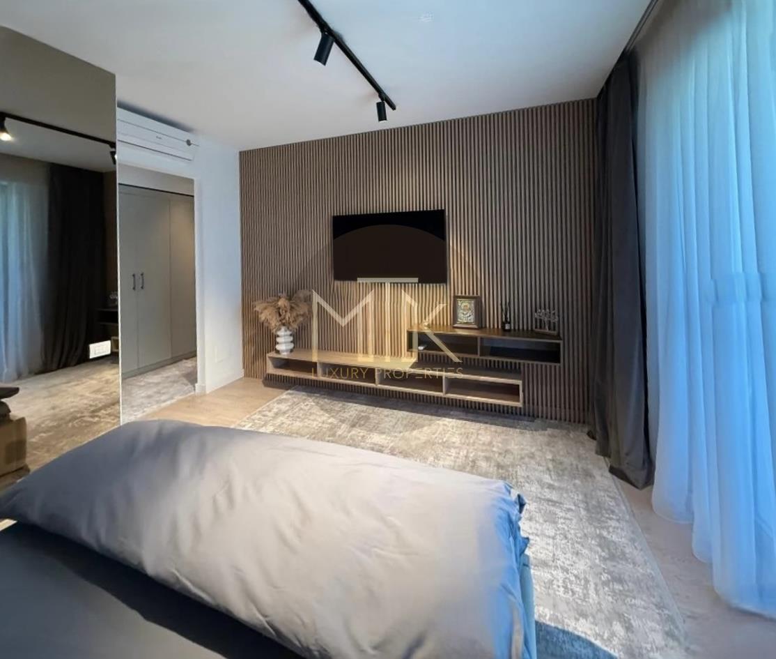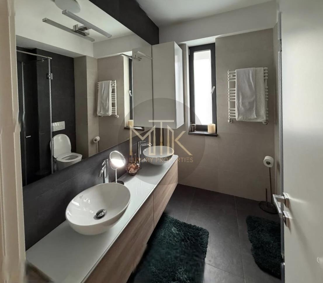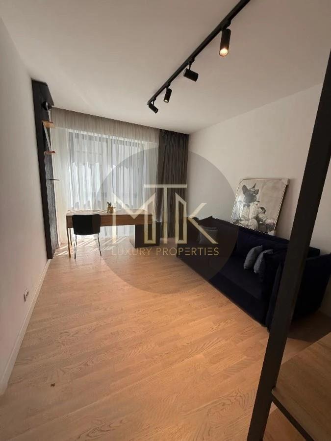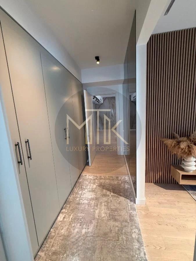 Acest apartament prevede un spatiu deschis unde este integrata zona de dining si zona de living, o bucatarie open space, un dormitor spatios cu dressing cu oglinzi, dormitor secundar cu canapea, 2 bai dintre care unca cu dus de tip walk in si o baie cu cada, hol cu dressing incorporat in perete si multiple spatii de depozitare, balcon de 20mp. Aceasta proprietate a fost proiectata meticulos pentru a maximiza spatiul interior.