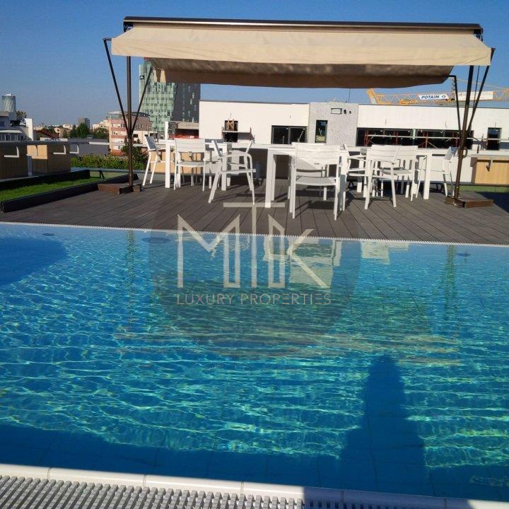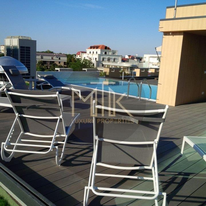 Pe acoperisul cladirii se afla o piscina spectaculoasa, ideala pentru relaxare in timpul zilelor insorite si pentru a admira vederea de sus.