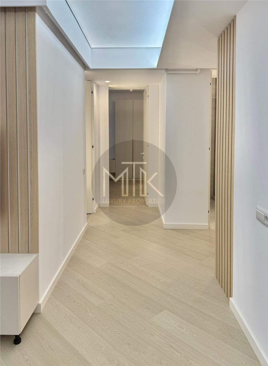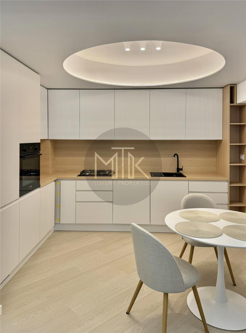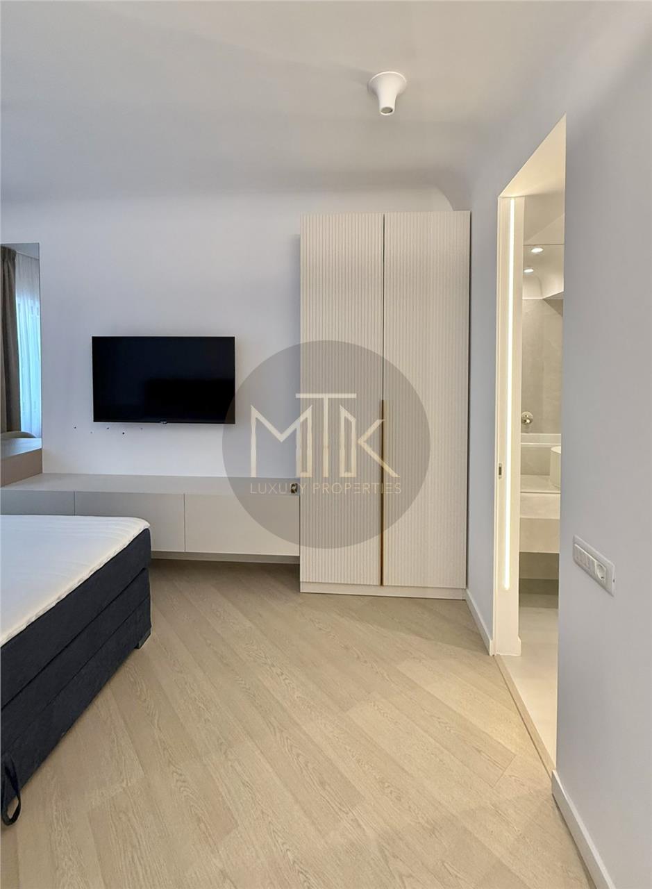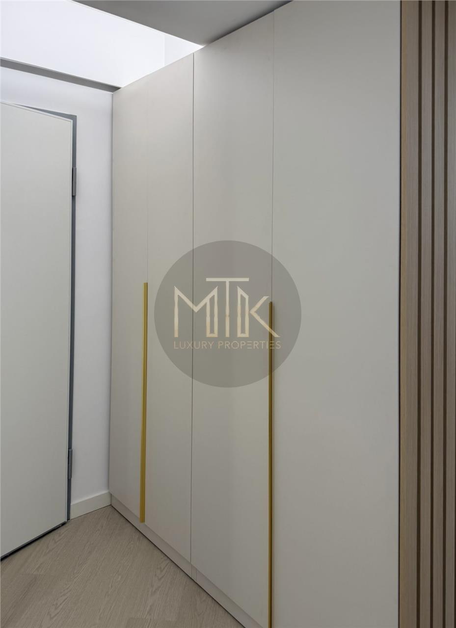 Apartamentul se afla la etajul 1 intr-un bloc cu regim de inaltime S+P+10 si este format dintr-un living luminos open-space cu zona de dining, cu iesire pe terasa de 8 mp, are o canapea generoasa, smart tv, bucatarie deschisa echipata complet, 1 dormitor generos cu pat king-size si dressing, al 2-lea dormitor dotat cu dressing si canapea si 2 bai: una cu cada (prezenta in dormitorul matrimonial), iar cealalta cu cabina de dus de tip walk-in si un hol eficient ce delimiteaza zona de zi cu cea de noapte, unde se regasesc multiple spatii de depozitare.