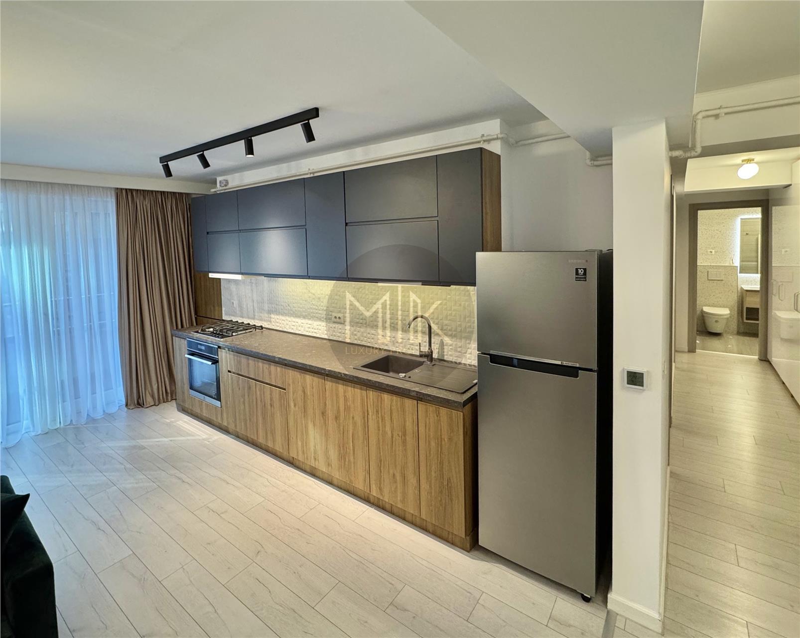 -Living luminos cu bucatarie tip open space, creand o zona de zi aerisita si luminoasa;