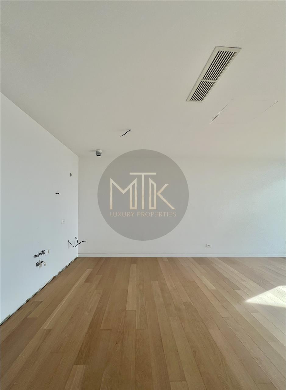 Proprietatea face parte dintr-un imobil boutique recunoscut pentru standardele tehnice ridicate si designul avangardist, unde calitatea constructiei se reflecta in fatada ventilata cu eficienta termica superioara si in finisajele interioare atent alese, inclusiv usi filomuro integrate discret in pereti pentru un aspect curat si minimalist. Apartamentul beneficiaza de incalzire in pardoseala, sistem de climatizare Daikin VRV pentru incalzire si racire, suprafete vitrate ample cu tamplarie din aluminiu, pardoseli din lemn triplu stratificat, echipamente electrice ABB/Gewiss, infrastructura de cablare Ethernet si un sistem Smart Home complet, care permite controlul iluminatului, temperaturii, jaluzelelor si securitatii prin aplicatie mobila.