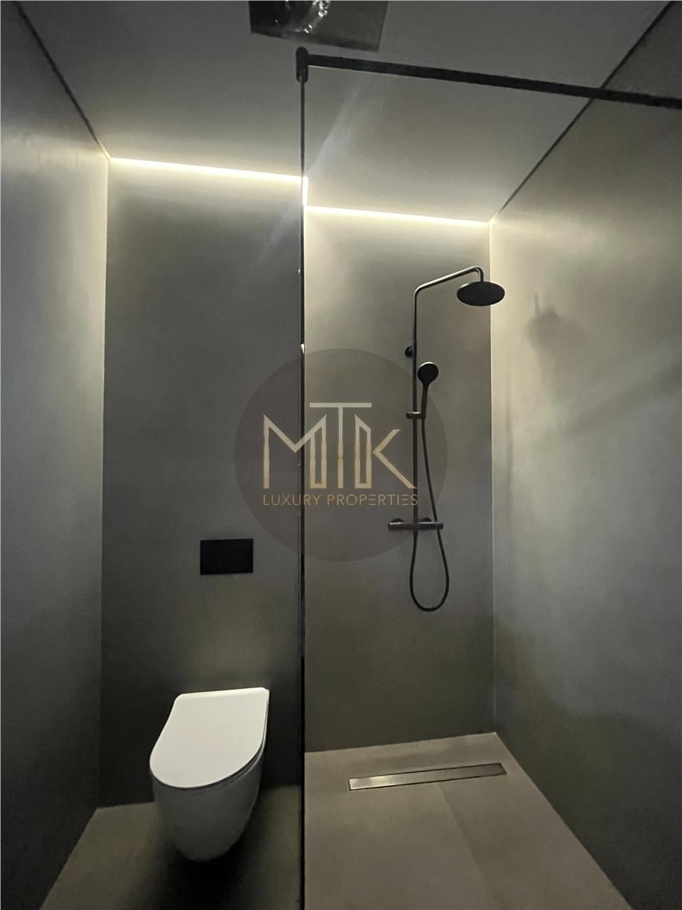 Proprietatea face parte dintr-un imobil boutique recunoscut pentru standardele tehnice ridicate si designul avangardist, unde calitatea constructiei se reflecta in fatada ventilata cu eficienta termica superioara si in finisajele interioare atent alese, inclusiv usi filomuro integrate discret in pereti pentru un aspect curat si minimalist. Apartamentul beneficiaza de incalzire in pardoseala, sistem de climatizare Daikin VRV pentru incalzire si racire, suprafete vitrate ample cu tamplarie din aluminiu, pardoseli din lemn triplu stratificat, echipamente electrice ABB/Gewiss, infrastructura de cablare Ethernet si un sistem Smart Home complet, care permite controlul iluminatului, temperaturii, jaluzelelor si securitatii prin aplicatie mobila.