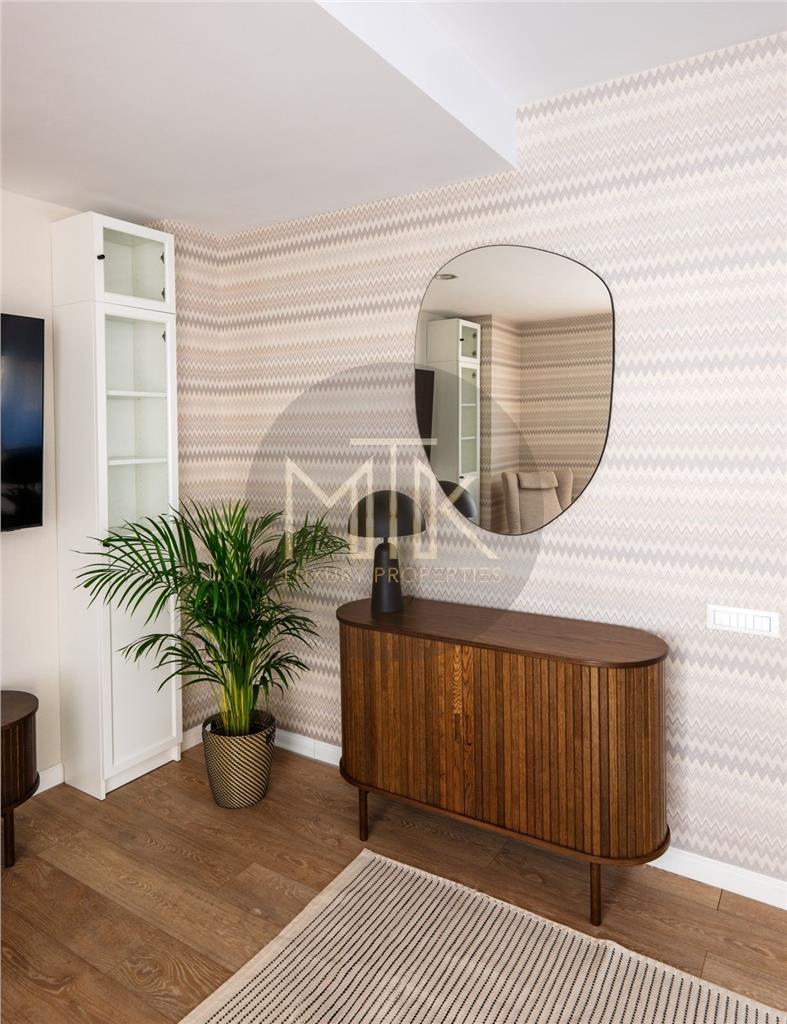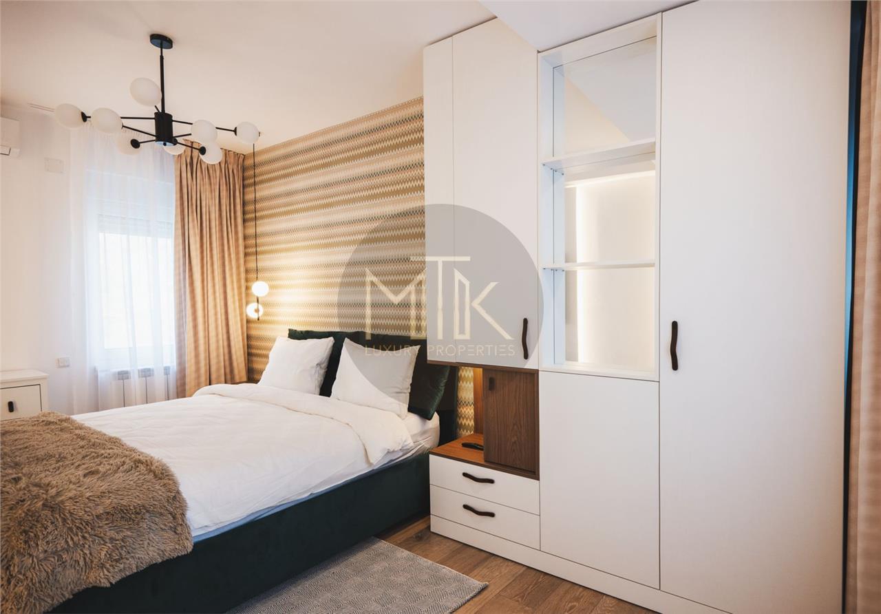 Apartamentul se afla la etajul 2 intr-un bloc de tip boutique cu regim de inaltime P+4 si este compus dintr-un living luminos, oferind un spatiu generos pentru relaxare si socializare, o bucatarie open space mobilata si utilata cu electrocasnice de ultima generatie, dormito cu dressing, dormitor secundar cu canapea, un hol de acces, si terasa mobilata inchisa ce va permite sa va bucurati de aerul proaspat si privelistea incantatoare a zonei verzi din jur.