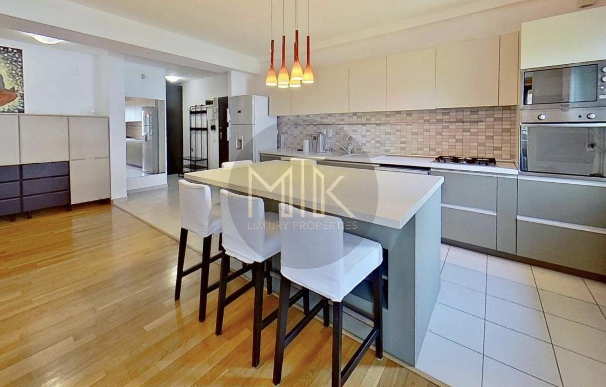 Livingul, extrem de generos ca spatiu, beneficiaza de o atmosfera luminosa si aerisita, avand o viziune deschisa asupra bucatariei open space, perfect integrata in designul general. Bucataria este echipata cu electrocasnice de ultima generatie, ideala pentru pasionatii de gatit, dar si pentru momentele de socializare cu familia si prietenii. Cele doua dormitoare dispun de dressinguri generoase de tip walk in, baile dintre care una cu cada si una cu dus de tip walk in sunt dotate cu obiecte sanitare de top si finisaje moderne, ce aduc un plus de confort si rafinament.