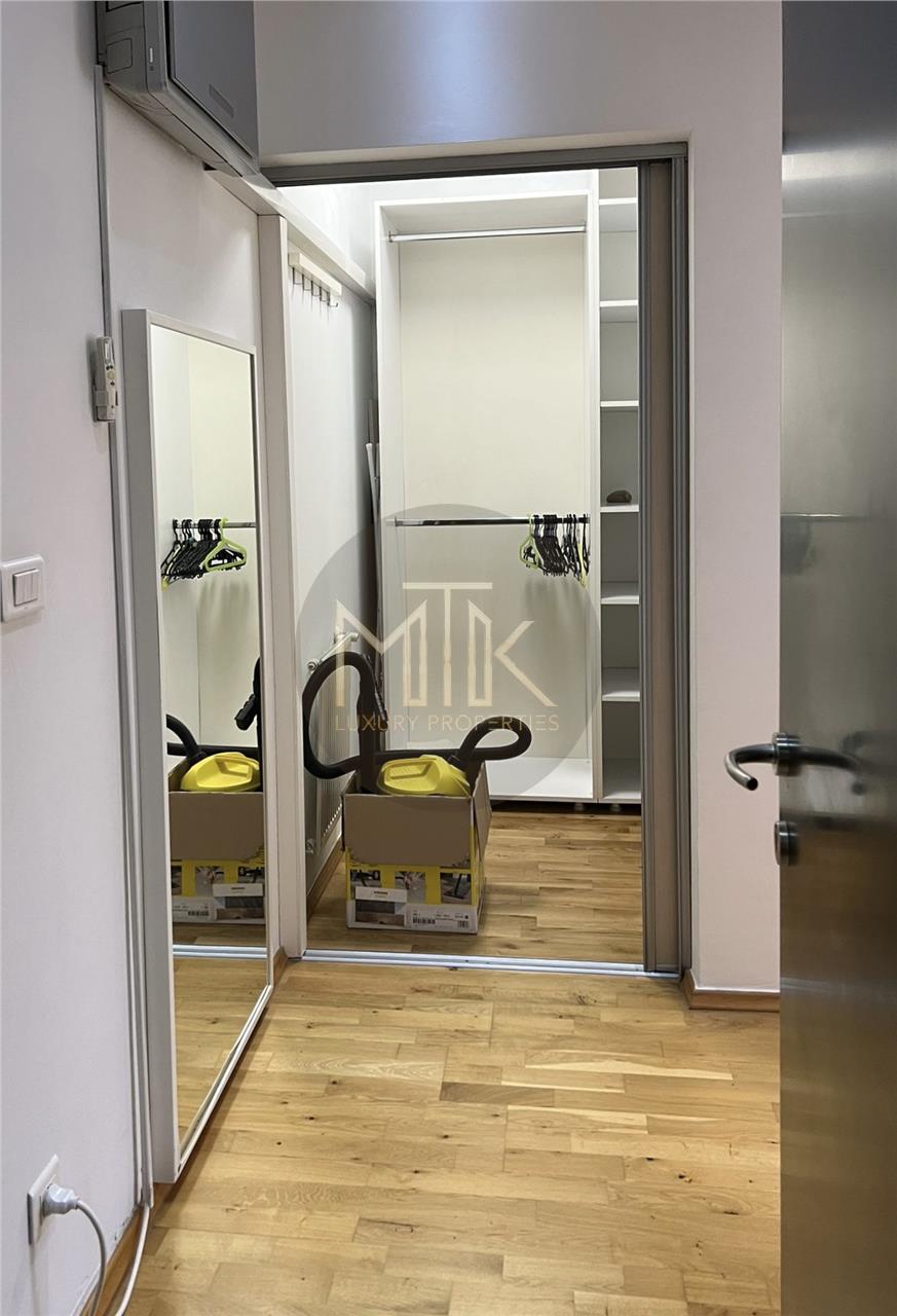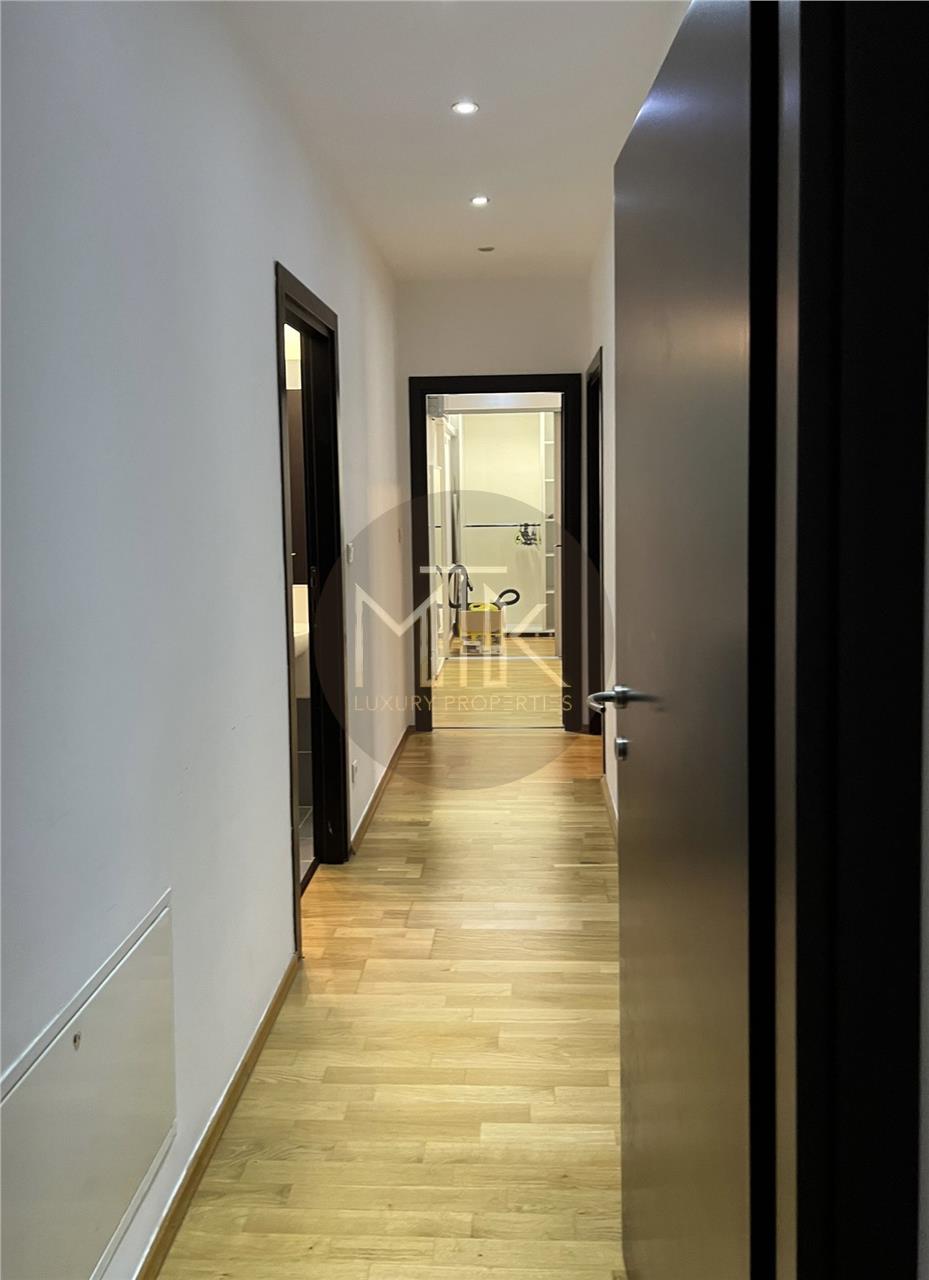 Apartamentul este compus din: living spatios cu zona de dining, bucatarie inchisa mobilata si utilata si o debara pentru depozitare alimente, un dormitor cu dressing, un dormitor secundar, dressing, 2 bai si un grup sanitar, hol de acces si un balcon de 8MP precum si o gradina proprie de 77MP.