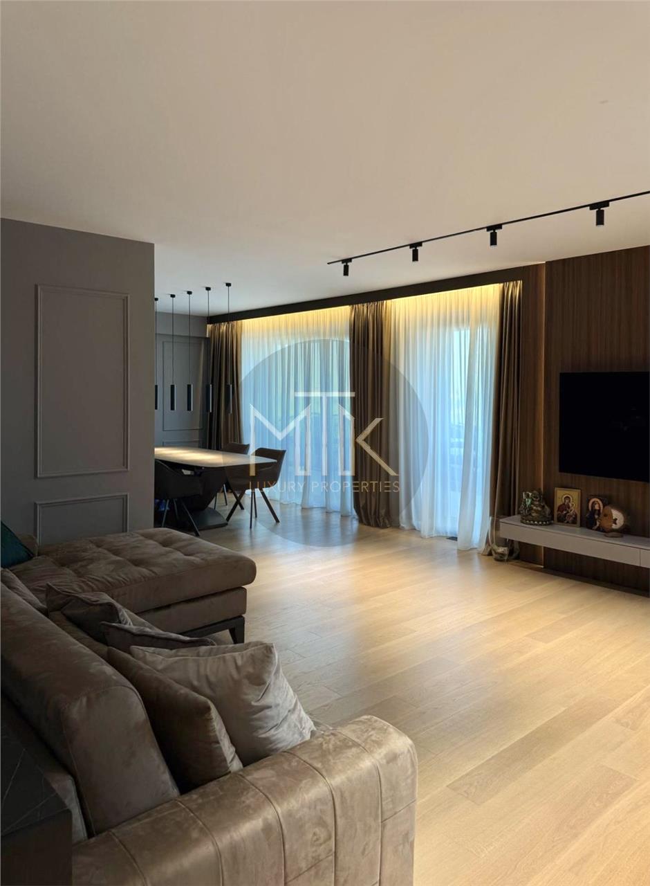 - Living generos, luminos, dotat cu o canapea confortabila, Smart TV, open-space cu zona de dining si bucataria, in care se regasesc electrocasnice de ultima generatie. De asemenea, din living se iese pe terasa spatioasa de 98 MP, mentionata mai sus, iar datorita orientarii, te poti bucura de soare pe terasa pe tot parcursul zilei, dar si de umbra, atunci cand ai nevoie sa te racoresti intr-zi de vara.