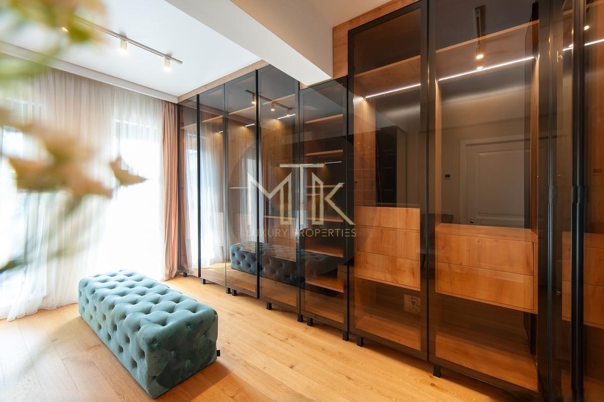 * Cea de-a treia cameră a fost transformată într-un dressing walk in cu dulapuri din sticlă fumurie și structură de lemn, oferind o vizibilitate excelentă și un spațiu vast pentru depozitare;