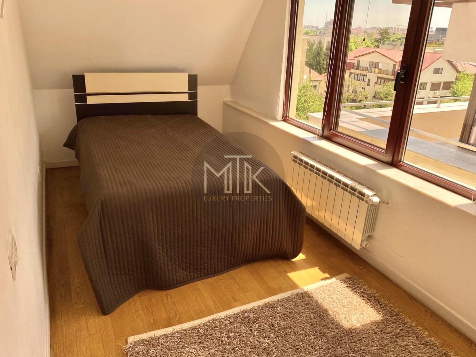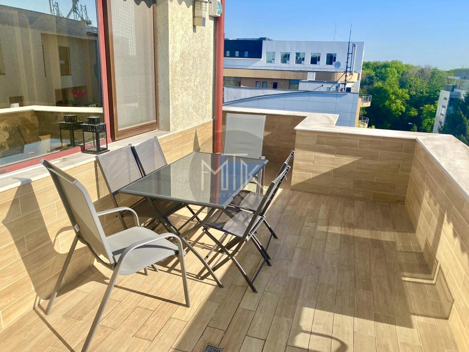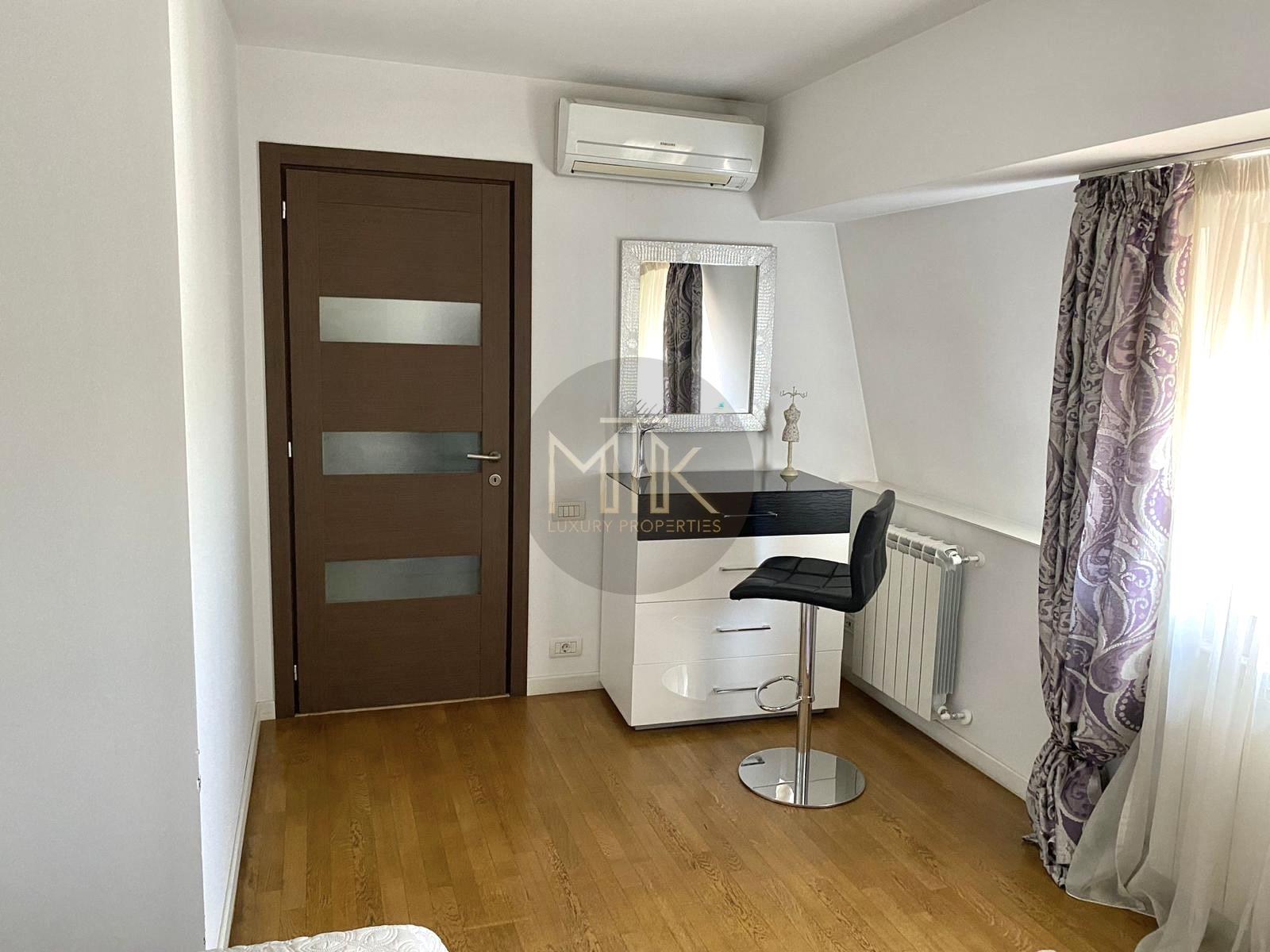 MTK Real Estate are placerea de a va propune spre inchiriere un apartament de 4 camere tip duplex, cu adevarat special, situat in zona Aviatorilor, la doar cativa pasi de Piata Charles de Gaulle si de intrarea in Parcul Herastrau. Proprietatea se afla la etajele 5 si 6 ale unui imobil modern, construit in 2009, cu regim de inaltime S+P+6E, si ofera o suprafata totala de 220 mp, din care 160 mp utili, completata de o terasa panoramica de 28 mp.
