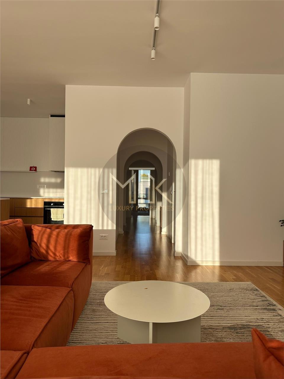 Apartamentul este la prima inchiriere, si este format dintr-un living luminos cu cu bucatarie open space, dormitor matrimonial cu dressing, doua dormitoare secundare, 2 bai, hol cu multiple spatii de depozitare, 2 terase ce insumeaza 30MP.