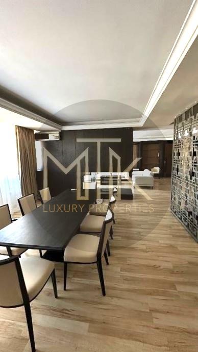 Apartamentul, se intinde pe ultimele 3 etaje dintr-un bloc cu regim de inaltime P+10, si este compartimentat dupa cum urmeaza: living spatios cu zona de dining si acces pe balcon, bucatarie deschisa cu insula si electrocasnice de ultima generatie, dormitor matrimonial cu dressing de tip walk in si baie proprie cu cada, dormitor secundar cu dressing, o camera transformata in birou ce beneficiaza de un dressing de tip walk in, o baie cu dus aflata pe hol, terasa de 80mp cu o gradina si vederea asupra intregului complex.