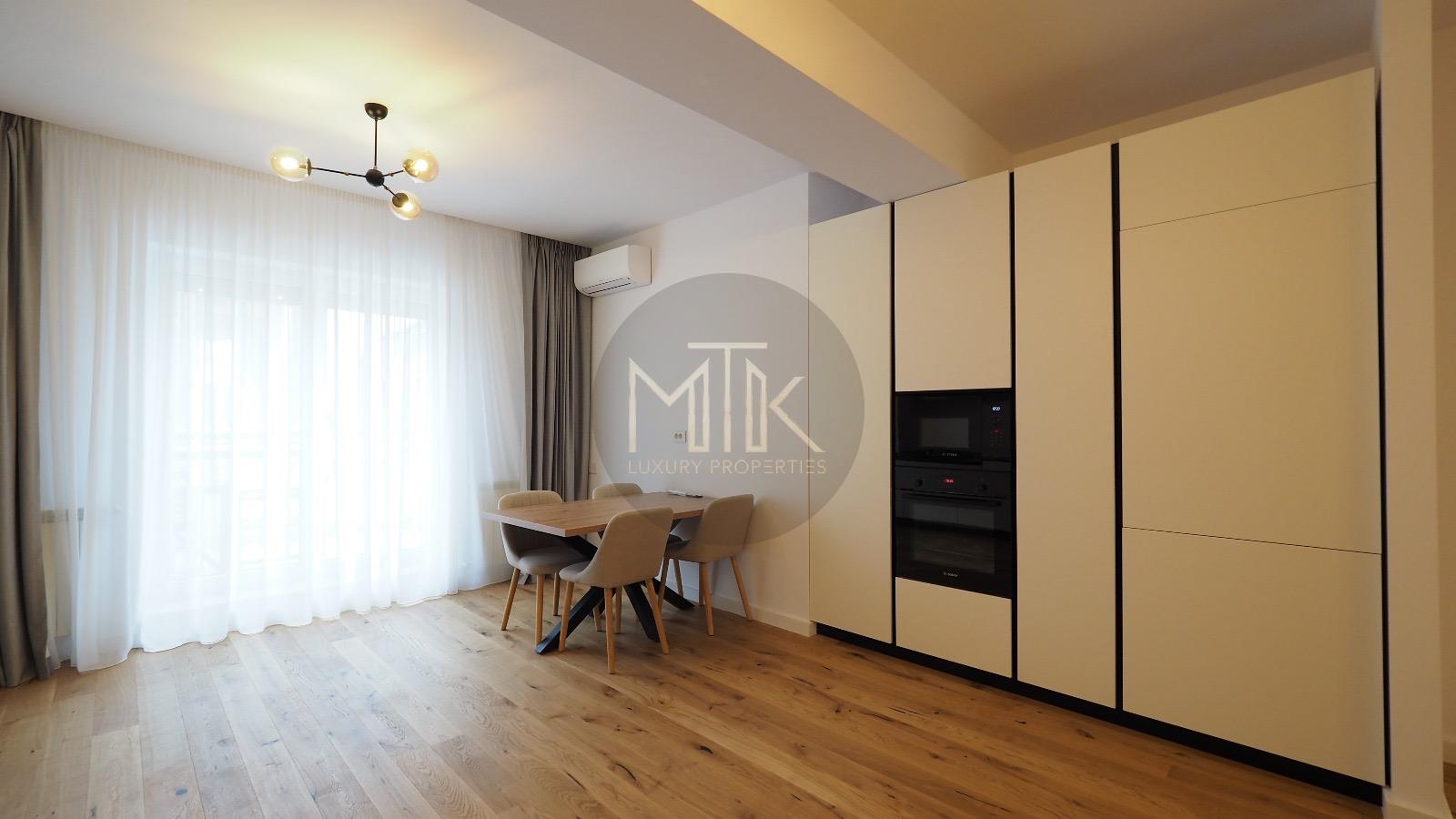 - Living spatios cu zona de dining, luminat natural datorita ferestrelor largi care ofera acces la o terasa spatioasa, ideala pentru momente de relaxare sau socializare in aer liber. Bucataria deschisa ce vine in completarea livingului este dotata cu spatii de depozitare multiple si electrocasnice premium integrate ce face ca acest spatiu sa fie atat functional cat si placut din punct de vedere estetic.