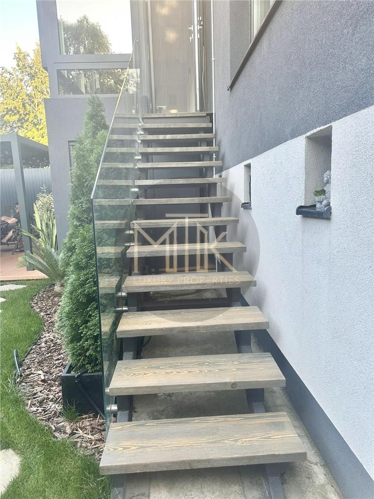 -  terasa cu acces din living si scari care duc catre gradina interioara si catre alta camera care poate fi atat birou cat si dormitor sau spatiu de joaca pentru copii in functie de preferinte si care beneficiaza de o baie proprie;
