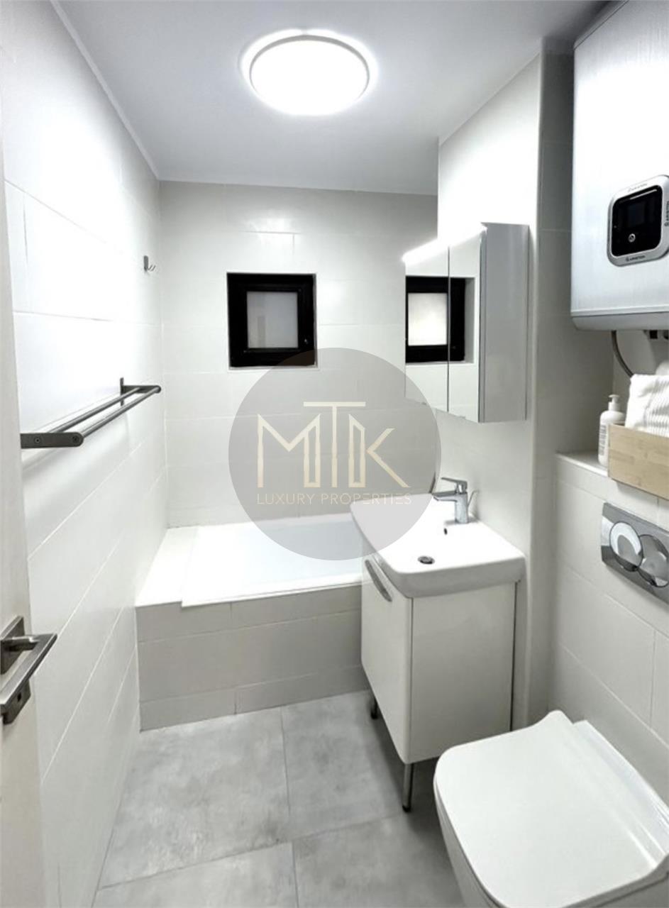 Bai: 2 bai complet refacute (una cu cada, una cu dus), ambele dotate cu boilere electrice Ariston de ultima generatie pentru independenta totala fata de reteaua publica de apa calda.