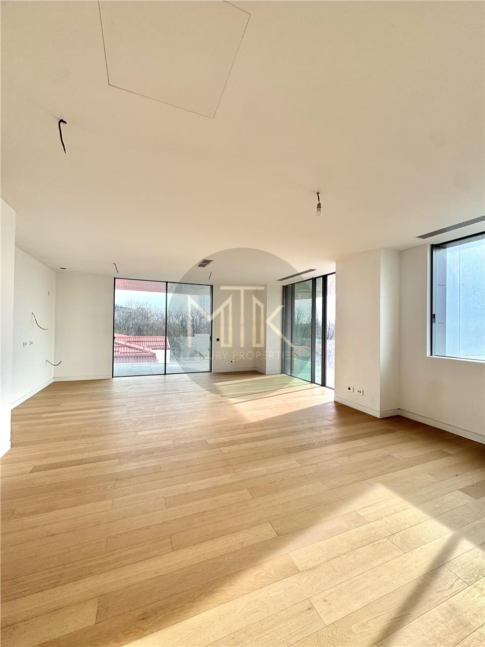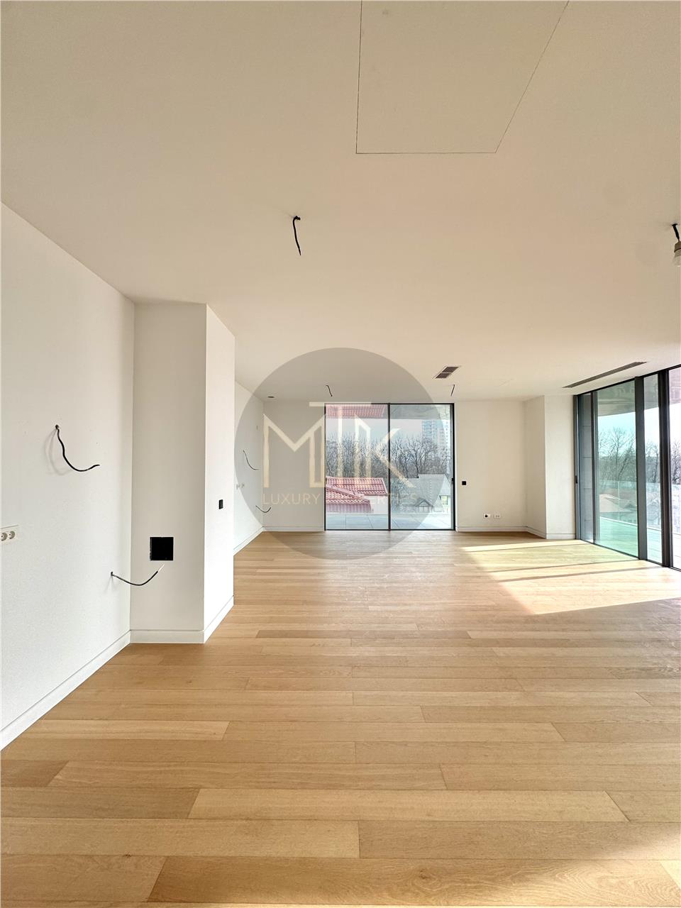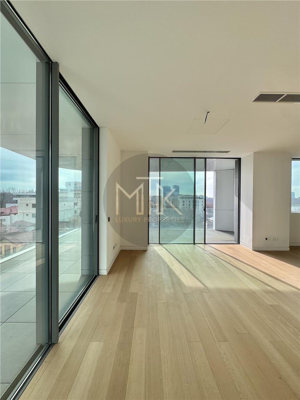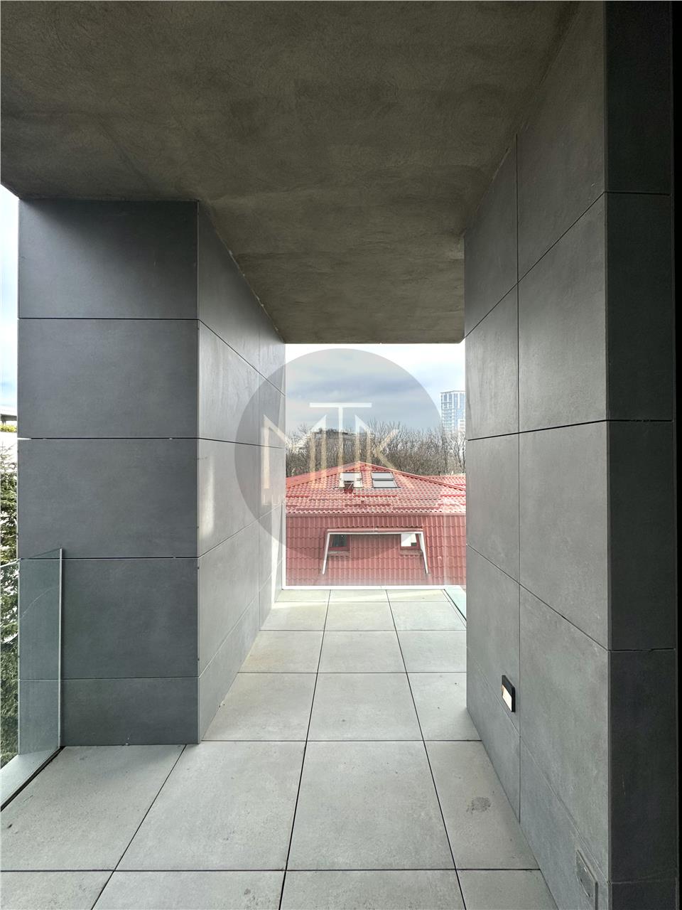 Proprietatea face parte dintr-un imobil boutique recunoscut pentru standardele tehnice ridicate si designul avangardist, unde calitatea constructiei se reflecta in fatada ventilata cu eficienta termica superioara si in finisajele interioare atent alese, inclusiv usi filomuro integrate discret in pereti pentru un aspect curat si minimalist. Apartamentul beneficiaza de incalzire in pardoseala, sistem de climatizare Daikin VRV pentru incalzire si racire, suprafete vitrate ample cu tamplarie din aluminiu, pardoseli din lemn triplu stratificat, echipamente electrice ABB/Gewiss, infrastructura de cablare Ethernet si un sistem Smart Home complet, care permite controlul iluminatului, temperaturii, jaluzelelor si securitatii prin aplicatie mobila.